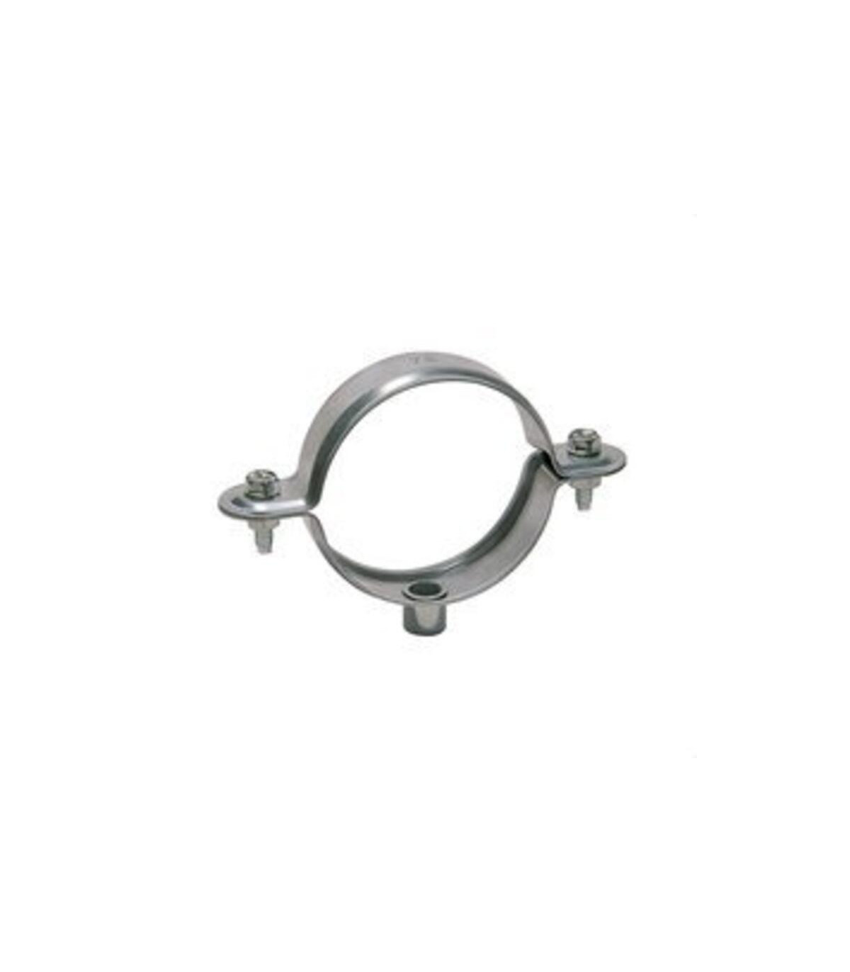Abrazadera metálica para desagüe M8 tipo D de 110 mm hecho de acero cincado sendzimir. Dispone de tornillo y tuerca imperdible. El perfil de acero incluye nervio para garantizar una mejor resistencia en los bajantes. El recubrimiento Sendzimir lo hace más resistente a la corrosión. Abrazadera metálica de alta resistencia, con rosca M8 y diámetro de 110 mm, fabricada en acero cincado para garantizar una óptima protección contra la corrosión. Está diseñada para sujetar y fijar tuberías, cables o conductos en diversas instalaciones, asegurando una fijación firme y duradera. Su acabado en acero cincado le proporciona una mayor durabilidad y resistencia en ambientes agresivos.