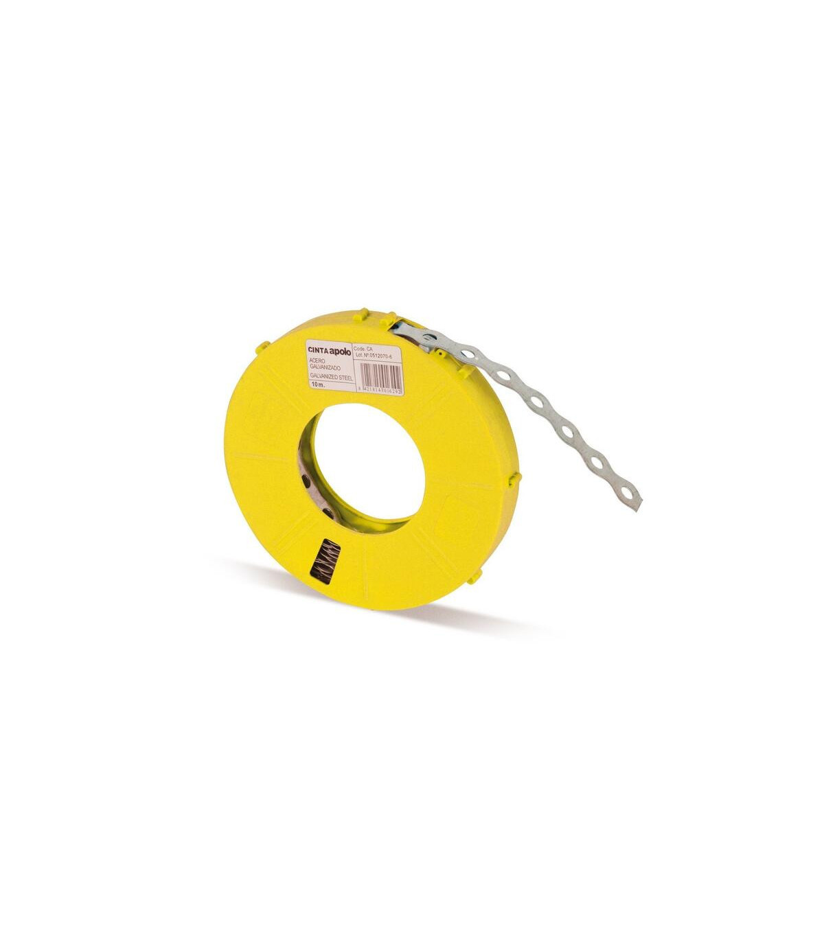 Fleje fabricado APOLO en acero dulce galvanizado. Homologado al fuego si se utiliza con clavadora a gas AGII. La Cintapolo CA de CELO, fabricada en acero blando con acabado galvanizado Sendzimir, es una cinta perforada metálica diseñada para aplicaciones de sujeción flexible en instalaciones eléctricas, de fontanería y otras estructuras técnicas. Con un grosor de 0,7 mm, esta cinta ofrece una excelente capacidad de flexión y adaptabilidad, facilitando su instalación incluso en superficies irregulares.