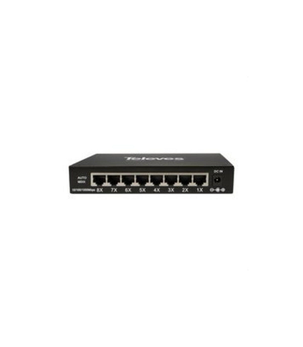 Switch Ethernet Layer 2 no gestionable 8 puertos, 10/100/1000Mbps. Switch no gestionable de capa 2, con 8 puertos Gigabit Ethernet para enlaces de hasta 1 Gbps. Este dispositivo "Plug and Play" presenta un funcionamiento sencillo sin necesidad de configuración. Adecuado para múltiples aplicaciones, es ideal para redes pequeñas que requieren pocos puertos. Permite la interconexión de los dispositivos de una red de área local de acuerdo con lo dispuesto en la legislación ICT-2.. Cumple con los estándares IEEE 802.3 (10Base-T), IEEE 802.3u (100Base-TX), IEEE 802.3ab (1000Base-T), IEEE 802.3x (Flow Control). Plug and Play: Instalación rápida y sencilla. Carcasa de metal que ofrece un diseño profesional, además de una mayor disipación y robustez. Soporta tablas de direcciones MAC de hasta 8K. Compatible con los protocolos CSMA/CD. Indicadores LED de monitorización y diagnóstico. Tamaño reducido. Fuente de alimentación incluida. El switch Ethernet Televés 768111 es un dispositivo de red no g