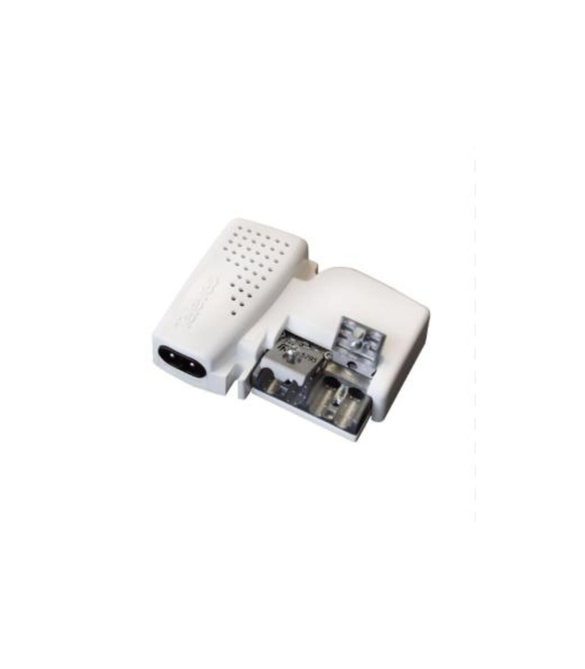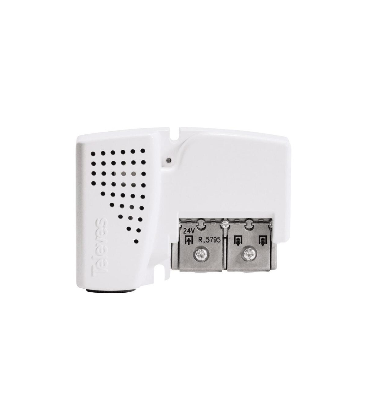 Fuente de alimentación PicoKom 24V - 130mA, 2 salidas. Fuente para vivienda de 24V (130mA) que envía alimentación a través del cable coaxial de entrada, permitiendo a su vez el paso de la señal de TV. Se intercala en la instalación para alimentar amplificadores de mástil o un sistema BOSS. Además, incorpora un repartidor para generar dos salidas.. Fuente conmutada de gran rendimiento: ahorro de consumo de hasta un 40%. Muy bajo consumo. Diseño estético y de tamaño ultrarreducido: instalable en cajas de conexiones de 100x100mm. Sistema de conexión EasyF. Fabricación completamente automatizada y sometida a rigurosos controles de calidad. La fuente de alimentación Televés 5795 PICOKOM EASY-F está diseñada específicamente para alimentar dispositivos electrónicos, como amplificadores de mástil, que requieren una tensión continua de 24V con una corriente máxima de 130 mA. Pertenece a la gama PICOKOM, caracterizada por su tamaño compacto, alta eficiencia energética y facilidad de instalación.