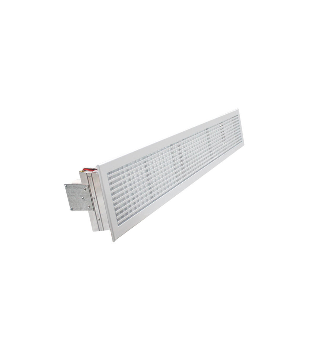 Rejilla de difusión RL00/RL0V con compuerta rectangular de rejilla motorizada (CPRR), de aluminio extrusionado con marco estánd