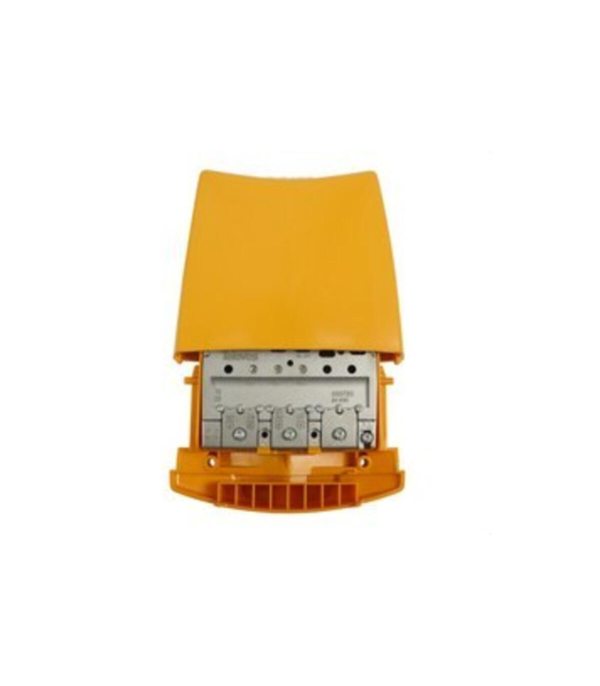 Amplificador de mástil de alta ganancia (LTE700, 2o Dividendo Digital) 3 entradas: FM-BIII/DAB-UHF. Amplificador de instalación en mástil para amplificar señales de televisión terrestre provenientes de varias antenas. Consta de 3 entradas con amplificación en todas las bandas. El amplificador se alimenta a 24Vdc a través del cable coaxial de salida.RED compliant.. Amplificación separada de cada banda. Alta ganancia de ajuste manual. Sistema de conexión EasyF. Fabricación completamente automatizada y sometida a rigurosos controles de calidad. Chasis de alto blindaje, fabricado en Zamak. El Televes 535720 es un amplificador de mástil de alta calidad diseñado para mejorar la recepción de señales de televisión terrestre. Cuenta con tres entradas independientes para FM-BIII, DAB y UHF, cada una con amplificación separada y ajuste manual de ganancia, lo que permite una adaptación precisa a las condiciones de la señal. Este modelo es especialmente útil en zonas con señales débiles o interfere