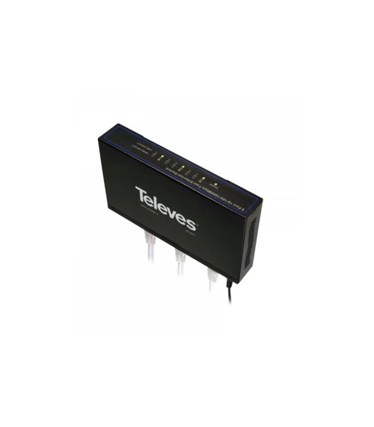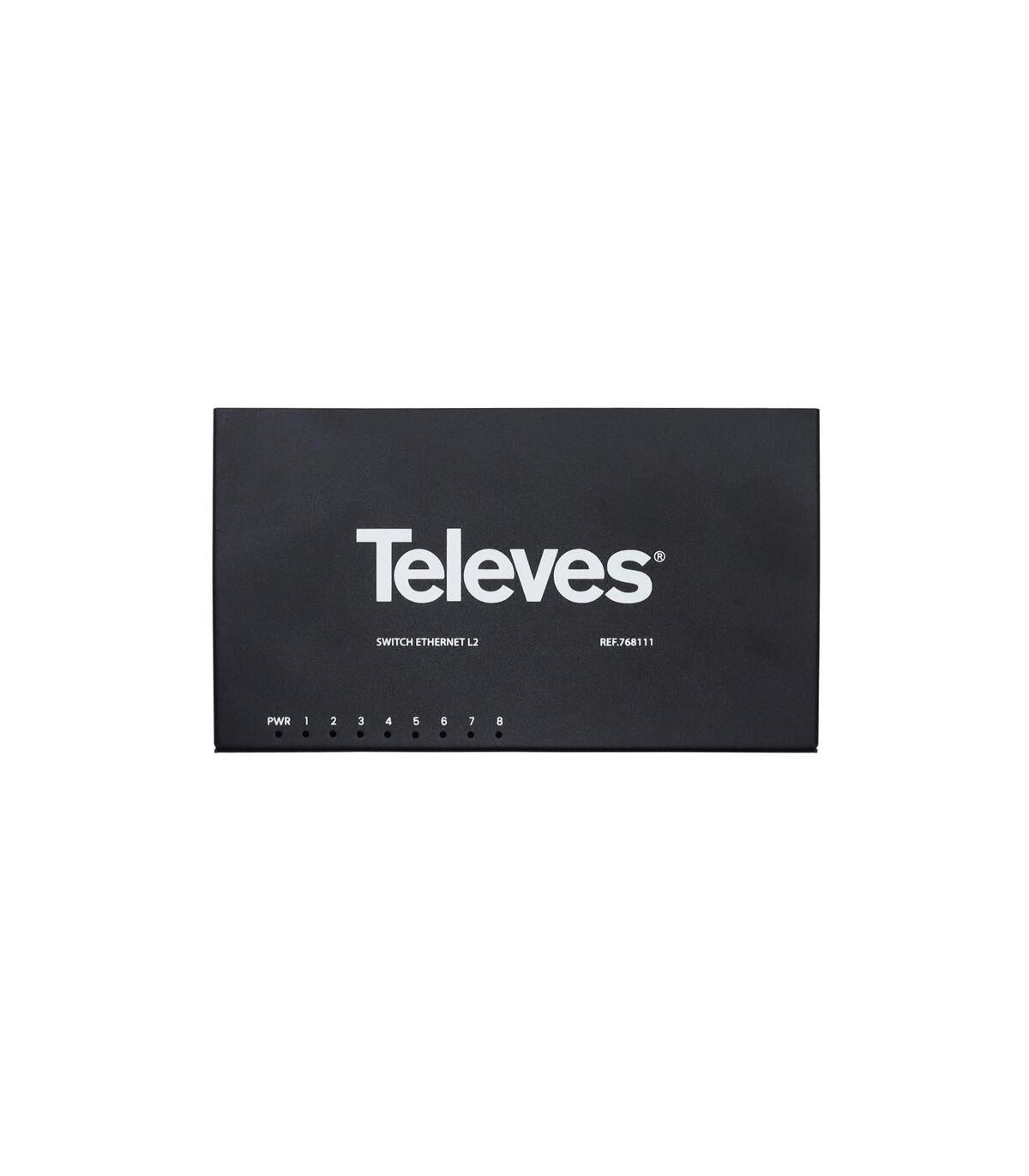 Switch Ethernet Layer 2 no gestionable 8 puertos, 10/100/1000Mbps. Switch no gestionable de capa 2, con 8 puertos Gigabit Ethernet para enlaces de hasta 1 Gbps. Este dispositivo "Plug and Play" presenta un funcionamiento sencillo sin necesidad de configuración. Adecuado para múltiples aplicaciones, es ideal para redes pequeñas que requieren pocos puertos. Permite la interconexión de los dispositivos de una red de área local de acuerdo con lo dispuesto en la legislación ICT-2.. Cumple con los estándares IEEE 802.3 (10Base-T), IEEE 802.3u (100Base-TX), IEEE 802.3ab (1000Base-T), IEEE 802.3x (Flow Control). Plug and Play: Instalación rápida y sencilla. Carcasa de metal que ofrece un diseño profesional, además de una mayor disipación y robustez. Soporta tablas de direcciones MAC de hasta 8K. Compatible con los protocolos CSMA/CD. Indicadores LED de monitorización y diagnóstico. Tamaño reducido. Fuente de alimentación incluida. El switch Ethernet Televés 768111 es un dispositivo de red no g