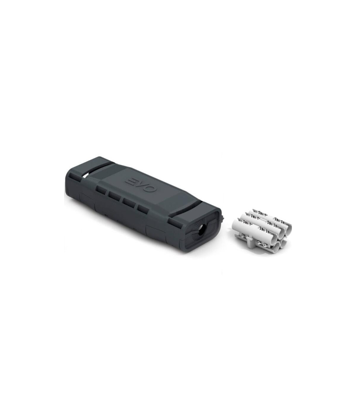 El empalme “EVO” IP68 en línea EV105 es una solución de alta protección para conexiones eléctricas en entornos exigentes. Con un grado de estanqueidad IP68, protege eficazmente frente al polvo y la humedad, garantizando la seguridad y durabilidad de la instalación. Sus dimensiones de 183x70x42 mm permiten un montaje cómodo y seguro, manteniendo los cables organizados y protegidos.Está diseñado para conductores de 5 x (4 a 16 mm²), asegurando una transmisión de corriente estable y eficiente, minimizando riesgos de cortocircuitos o fallos eléctricos. Su construcción robusta y resistente a impactos, combinada con la protección IP68, lo hace ideal para aplicaciones en exteriores, subterráneas o zonas con condiciones ambientales adversas. Además, su diseño sellado requiere un mantenimiento mínimo, ofreciendo una solución fiable y duradera para instalaciones eléctricas profesionales.