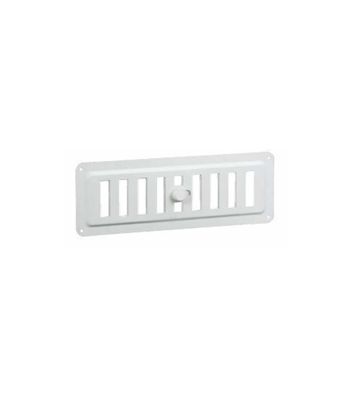 REJILLA REGULABLE PREBARNIZADA EN BLANCA Descripción Provista de marco de apyo y persiana para regular el flujo de ventilación. Embalada en plástico con código de barras. Material Fabricada en inox, prebarnizada blanca, resistente al envejecimiento por la exposición a los agentes atmosféricos. Utilización Favorece la buena circulación de aire, evitando la condensación. También se utiliza para ventilación de chimeneas o tubos con salida de humos.