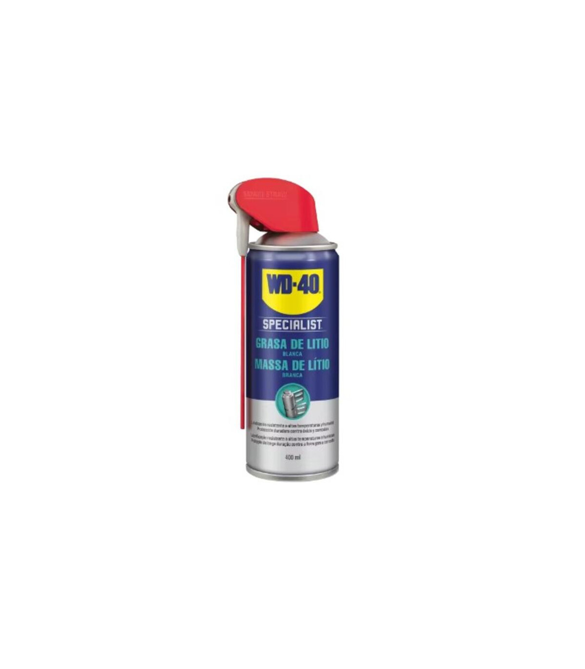 La grasa de litio blanca WD‑40 Doble Acción ofrece una lubricación duradera y resistente para mecanismes que treballen sota fricció intensa. La seva fórmula protegeix contra l’oxidació i la corrosió, assegurant un funcionament suau i silenciós. Gràcies al seu aplicador doble, permet una aplicació precisa o en spray segons la necessitat. És ideal per a frontisses, rodaments, guies, engranatges i components metàl·lics exposats a desgast continu.