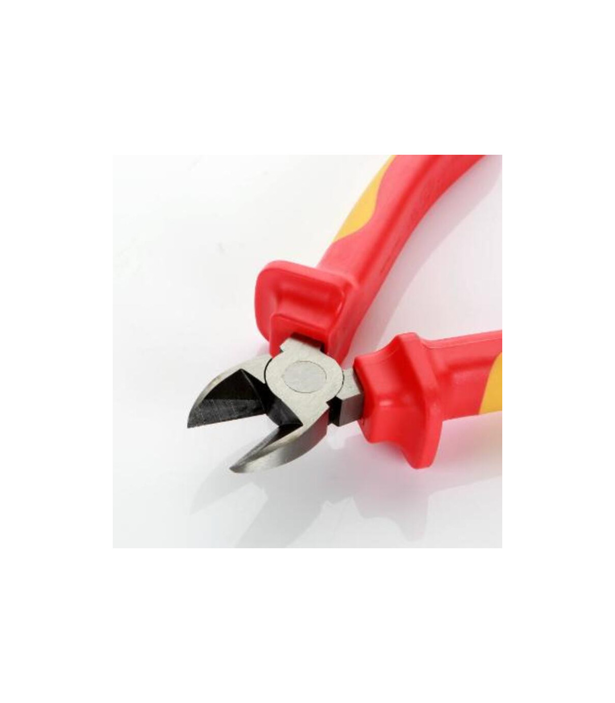 El alicate de corte diagonal aislado Alyco 101821 de 160 mm está diseñado para trabajos eléctricos en entornos con riesgo de descarga. Fabricado en acero al cromo vanadio, ofrece alta resistencia al desgaste, corte preciso y larga duración. Sus filos templados por inducción permiten cortar materiales duros y semiduros con eficacia.