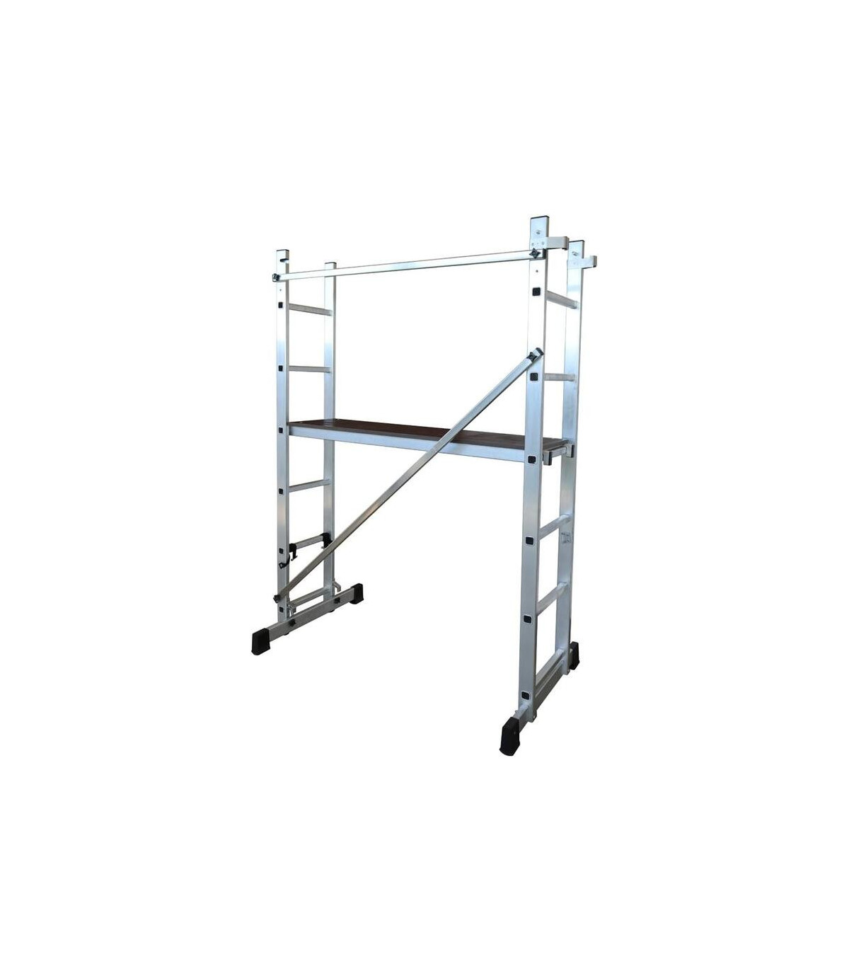El andamio‑escalera de aluminio de 6 peldaños (modelo 3506 de Altipesa) es una solución ligera y resistente diseñada para trabajos en altura con total estabilidad. Su estructura de aluminio garantiza durabilidad y facilidad de transporte, mientras que su plataforma ofrece una superficie segura para trabajar cómodamente. Incorpora peldaños antideslizantes y un diseño robusto que mejora la seguridad en tareas de mantenimiento, pintura o montaje. Es ideal tanto para uso profesional como doméstico gracias a su versatilidad y fiabilidad.