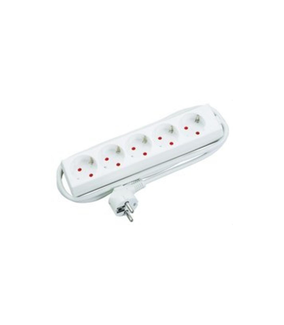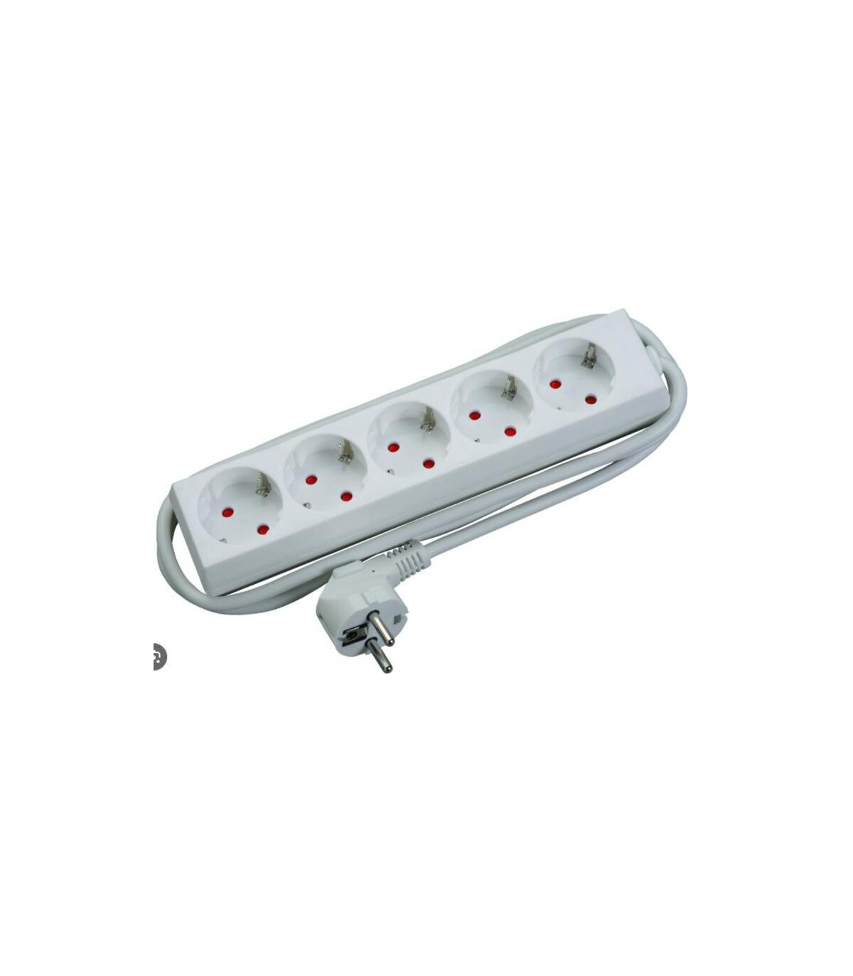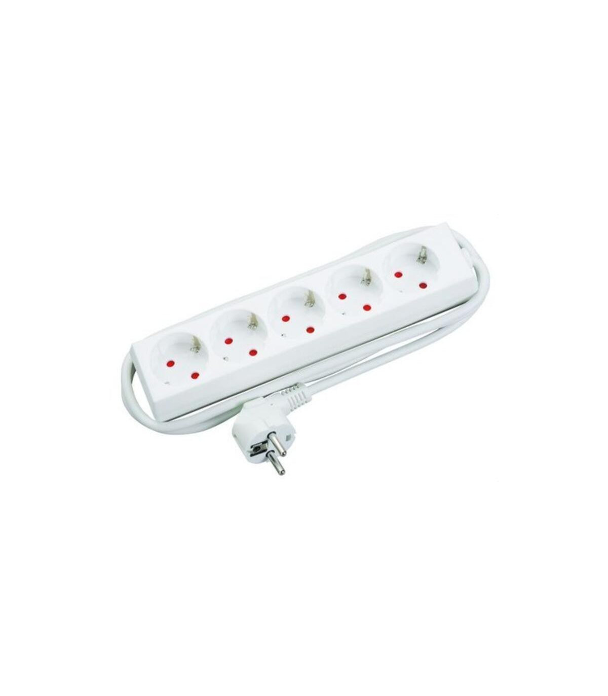 Base móvil bipolar múltiple con TT lateral. Quíntuple salida a 45º. Cable: 1,5m sección 3×1,5mm². 16A- 250V. Color blanco.