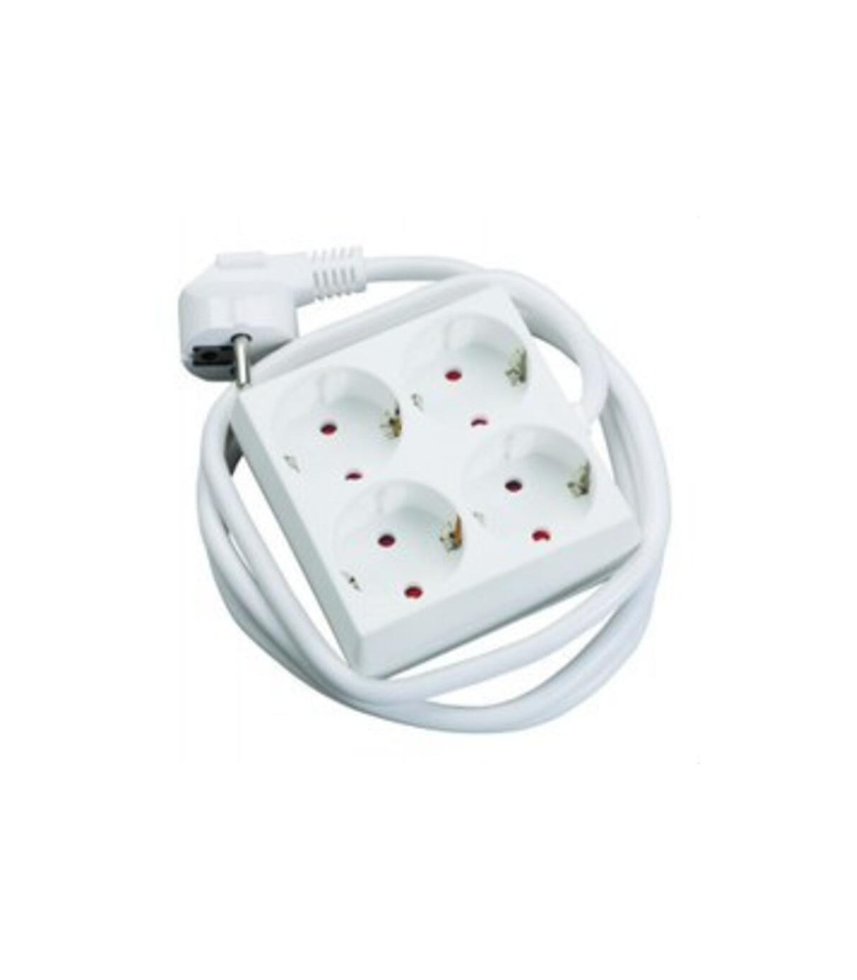 Base móvil bipolar múltiple con TT lateral. Con 4 salidas (2×2). Cable: 1,5 m sección 3×1,5mm². 16A 250V. Color blanco.