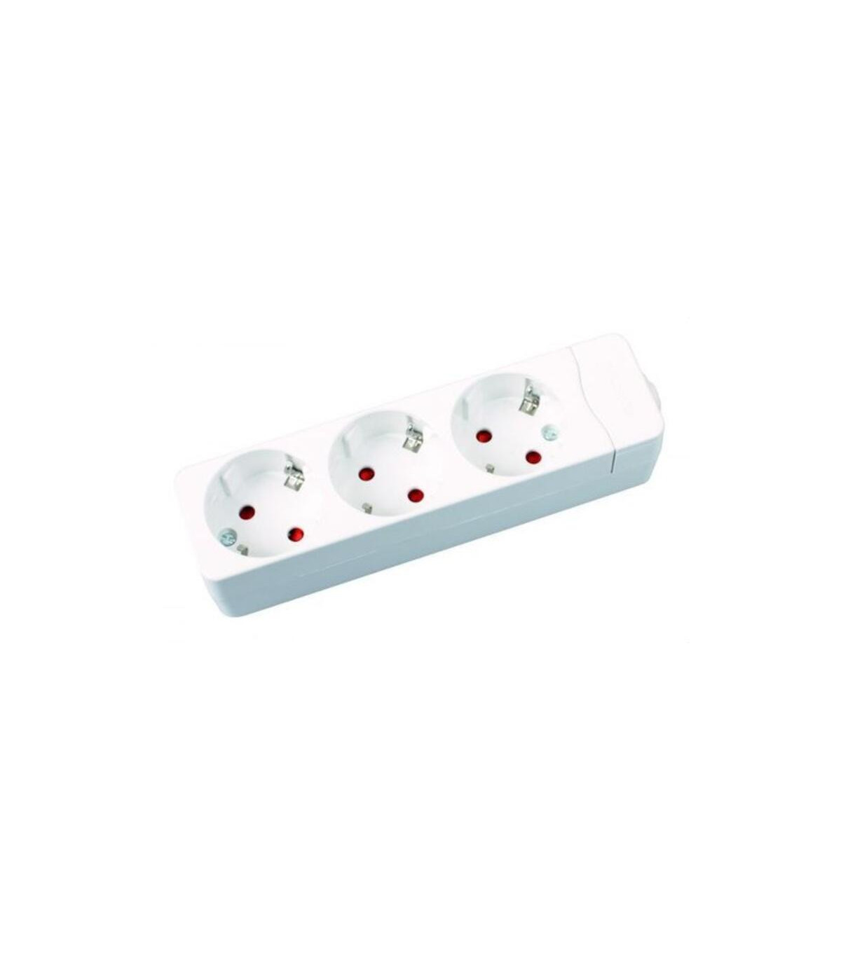 Base móvil bipolar múltiple con TT lateral. Triple salida a 45°. 16A 250V. Color blanco. La Base múltiple de 3 salidas sin cable en color blanco (referencia 283 B) de Fenoplástica es un accesorio esencial para cualquier instalación eléctrica que requiera conexión múltiple de dispositivos de manera segura y ordenada. Esta base permite enchufar hasta tres aparatos simultáneamente, facilitando la gestión de la energía en hogares, oficinas o talleres, sin necesidad de añadir cables adicionales. Su acabado en blanco proporciona un diseño limpio y discreto, que se integra fácilmente en distintos ambientes, manteniendo la estética del espacio.Fabricada con materiales de alta resistencia y calidad, esta base garantiza durabilidad y seguridad en el uso diario, resistiendo el desgaste propio de la conexión continua de aparatos eléctricos. Además, su diseño compacto y funcional permite una instalación rápida y sencilla, adaptándose a superficies y espacios variados. La base múltiple 283 B es una