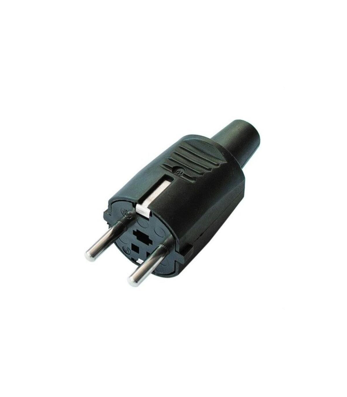 Clavija bipolar de goma con TT lateral y entrada de cable recta. 16A-250V. Color negro La clavija de goma para toma de tierra tipo Schuko, con capacidad de 10/16A, en color negro, es un producto de la marca Fenoplastica. Diseñada para conexiones eléctricas seguras, esta clavija garantiza una buena conductividad y resistencia al desgaste, ideal para instalaciones domésticas e industriales que requieren protección mediante toma de tierra. Su fabricación en goma ofrece durabilidad y flexibilidad, facilitando su uso y aumentando la seguridad en el manejo eléctrico.