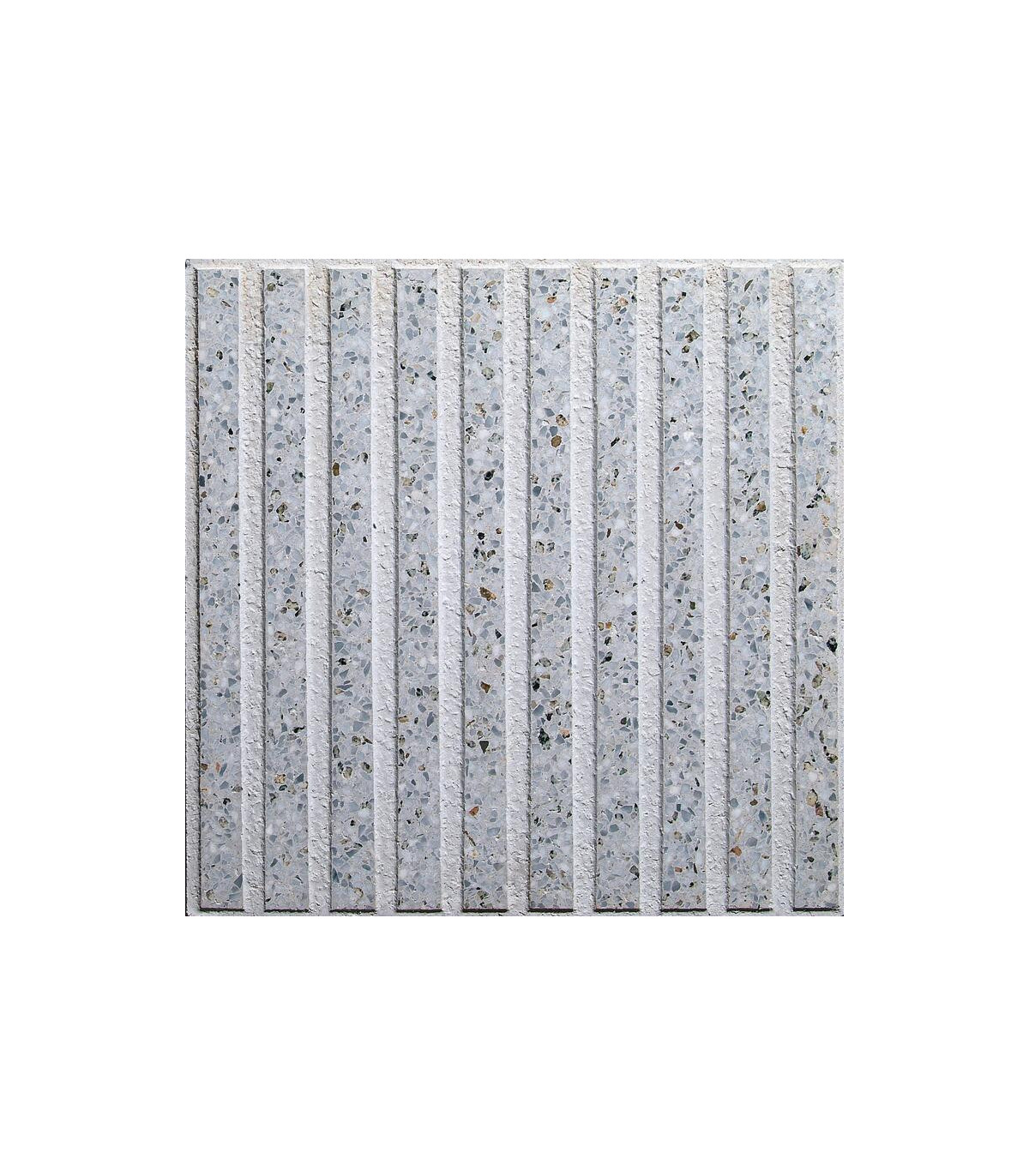 Nuestro terrazo 10 PIRELLI para exteriores presenta una cara visible pulida en relieve formada por formas geométricas. La cara de rodadura está compuesta de dos niveles: el superior finalmente pulido y el inferior ligeramente rugoso. Se caracteriza por su gran brillo para una pureza de líneas inmejorable. Es un pavimento de baja absorción de agua y resistente a las heladas, lo que mejora su durabilidad considerablemente. Por sus características de resistencia mecánica a la rotura, impacto y desgaste, este producto es ideal para usos en zonas exteriores de tránsito peatonal alto o medio tales como aceras, parques, jardines, piscinas, plazas y zonas de carácter ornamental para accesos a edificios.