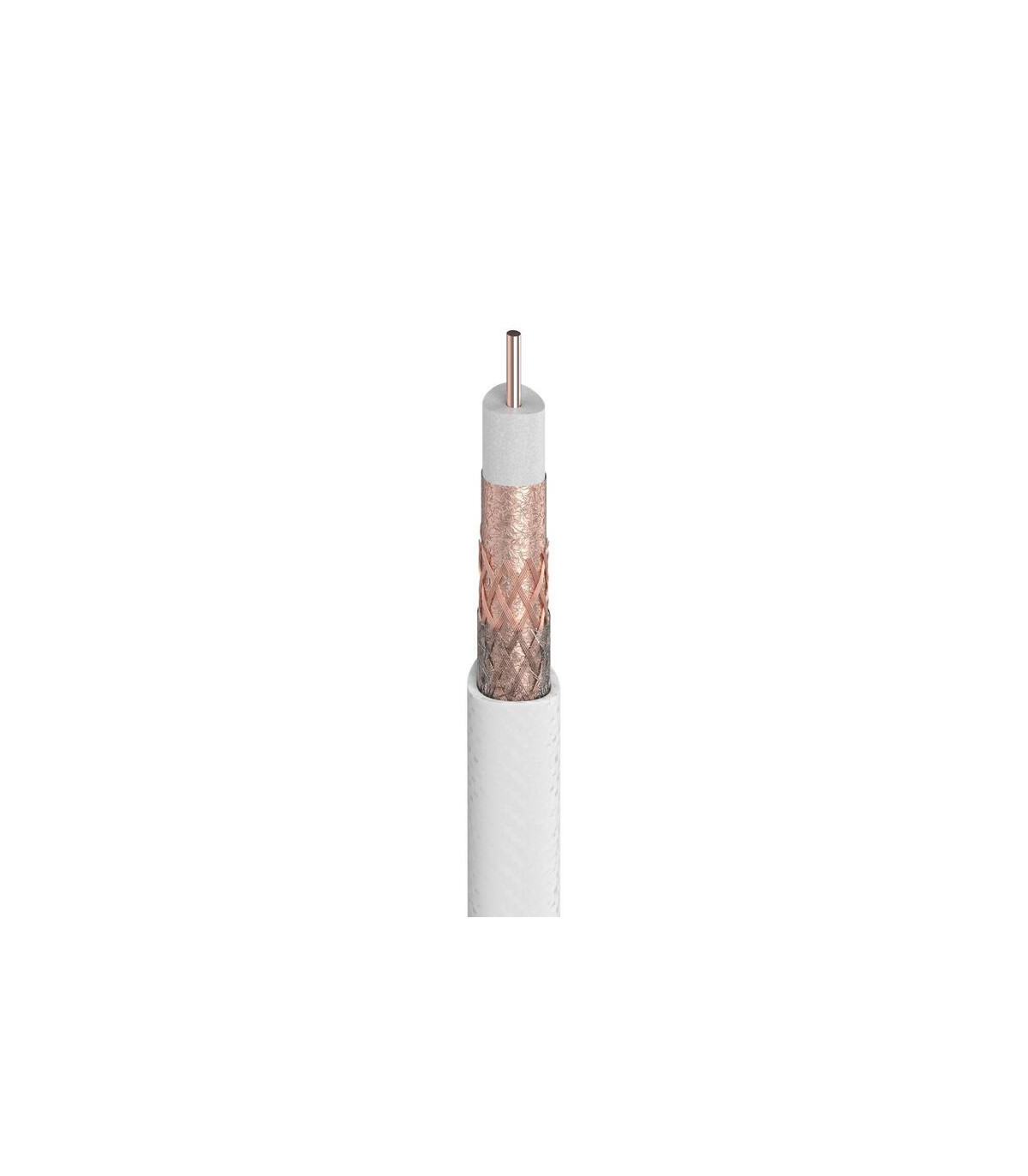 Cable coaxial T100plus, 16VRtC Euroclase Eca. Cable coaxial RG-6 con vivo y malla fabricados en cobre (Cu/Cu), de doble blindaje, que incorpora una lámina antimigratoria. Un cable 16VRtC, de cubierta PVC.. Conductores fabricados en cobre. Euroclase Eca. Lámina antimigratoria que evita la migración de los aditivos d la cubierta y la humedad al interior del cable, evitando así el deterioro de sus características. El cable coaxial T100 Plus blanco de TELEVES, ref. 2141, es un cable de alta calidad diseñado para la transmisión eficiente de señales de televisión, satélite e internet. Su construcción garantiza baja pérdida de señal y una excelente protección frente a interferencias electromagnéticas, asegurando una recepción nítida y estable en todo momento.Este cable cuenta con un aislamiento duradero y flexible, que facilita su instalación tanto en interiores como en exteriores, adaptándose a distintos entornos sin comprometer su rendimiento.