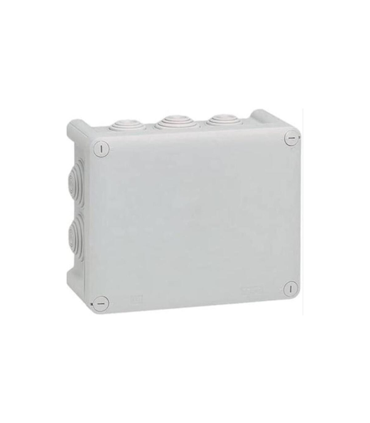 Caja Plexo 220x170x86. Cajas clase II - Gris RAL 7035 - 220 x 170 x 86mm - 8 entradas (Ref. 0 919 15) + 6 entradas (ref. 0 919 16) - Diámetro de cables y tubo aceptados: 4 a 32mm . Cajas estancas Plexo IP 55 - IK 07 - Autoextinguible 750 ºC (EN 60695 2-10) - Temperatura de utilización -25 ºC a + 40 ºC - Entradas de cable o tubo por membrana flexible, de entrada directa - Cierre por 1/4 de vuelta. - Visulalización de la posición abierto / cerrado (I/O) - fijación mural: - Por 2 o 4 puntos internos con tornillos Ø5mm máximo - Por los 4 ángulos (fuera del volumen de cableado) - Por patas de sujección, ref. 0 358 02 - Tapa opaca . La caja de derivación Plexo Legrand 092186 es una caja estanca de superficie, fabricada en plástico libre de halógenos, con grado de protección IP55 e IK07, ideal para instalaciones eléctricas en entornos exigentes. Sus dimensiones son 220 x 170 x 86 mm, y cuenta con 14 entradas para cables o tubos mediante membranas flexibles, aceptando diámetros de entre 4 y 32