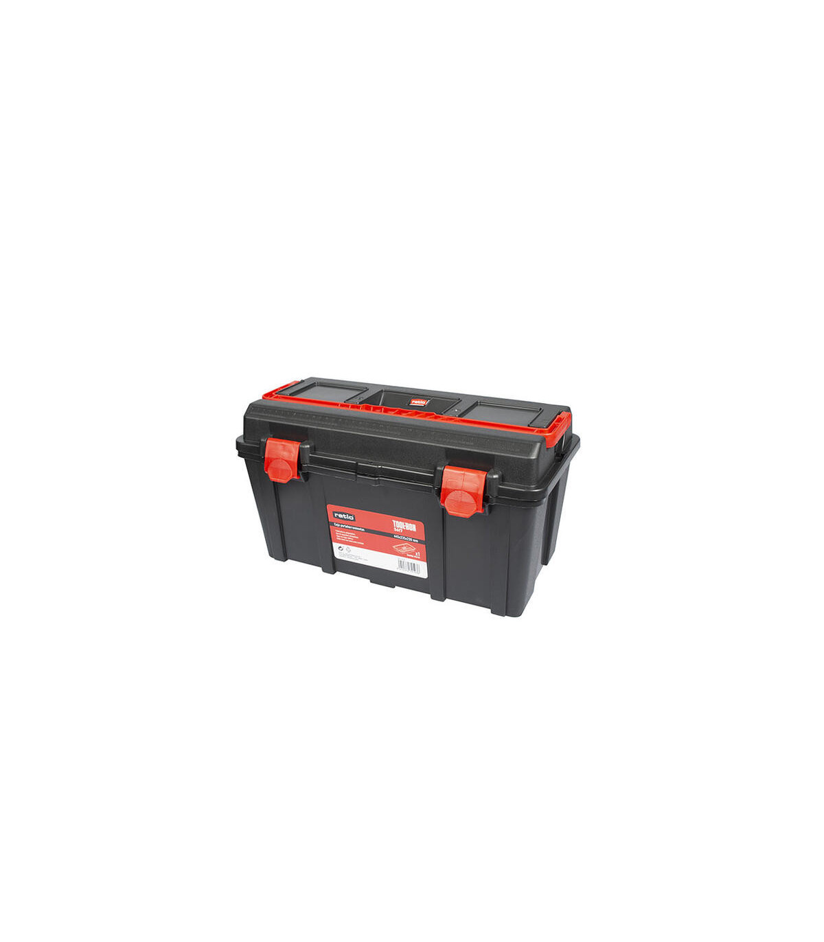 Polipropileno. Con asa de seguridad antiapertura, regla métrica en la tapa, doble cierre con hueco para candado. Fabricación nacional.