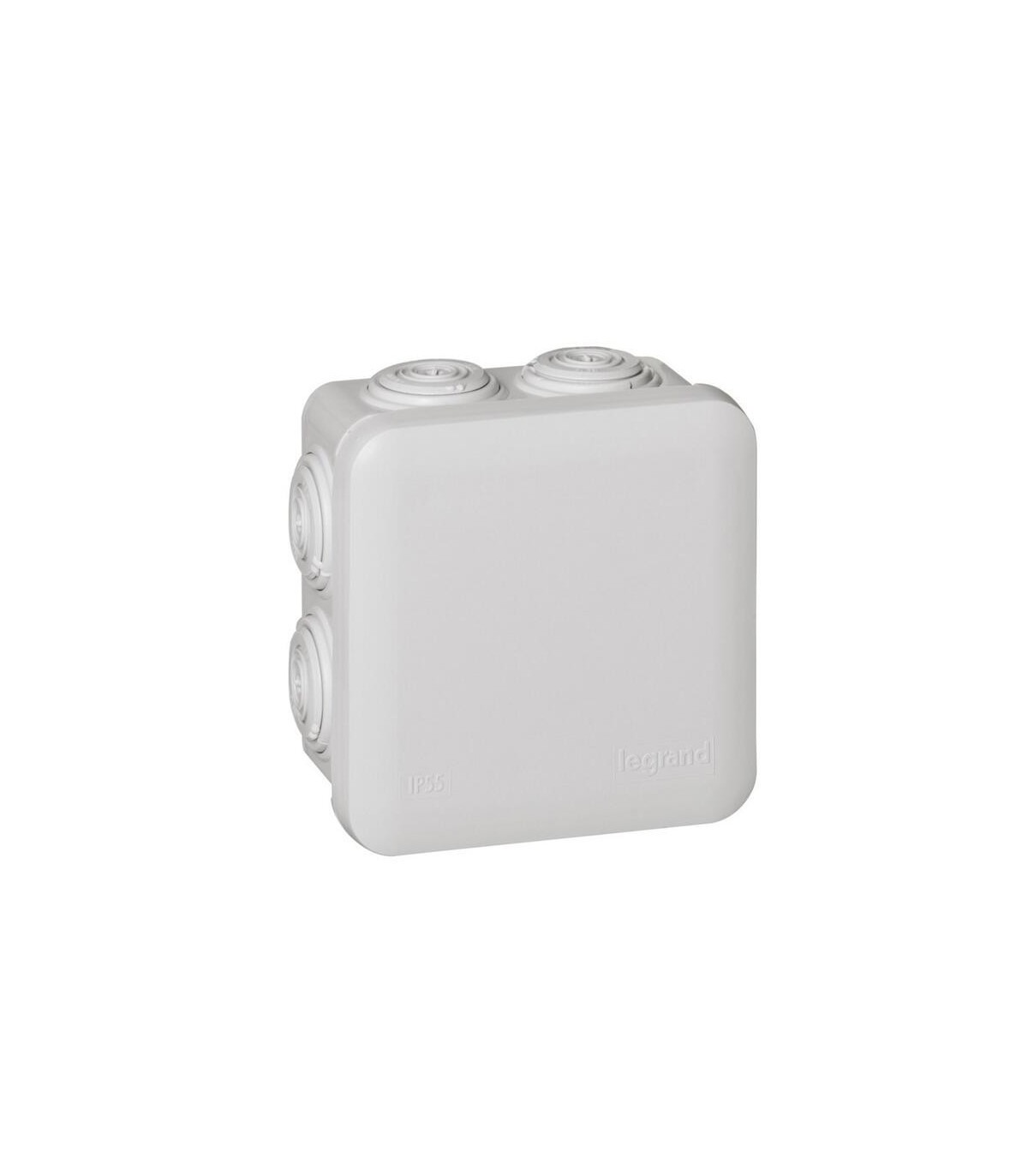 Caja estanca cuadrada de la gama Plexo IP55, IK 07, 650 °C, con temperatura de uso de -25 a +40 °C. Uso como caja de derivación en cualquier tipo de circuito de instalación normal (establecimientos abiertos al público según art. EL 10, vivienda e industria). Dispone de 7 conos (con zonas de marcado) y su tapa con cierre a presión está unida a la caja para evitar su pérdida, Ø cables y tubos admitidos 4 a 20mm. Los tapones de protección (incluidos) de los tornillos de fijación garantizan la clase II. 80 x 80 x 45mm. La Caja Plexo 80x80x45 con 7 entradas de Legrand (Ref. 092012) está diseñada para alojar conexiones eléctricas y proteger empalmes en instalaciones tanto residenciales como comerciales. Su estructura resistente asegura seguridad y durabilidad en todo tipo de entornos.Con capacidad para 7 entradas, permite una organización eficiente de los conductores y facilita la distribución de la instalación eléctrica. Su montaje sencillo y acabado de calidad convierten a esta caja en una