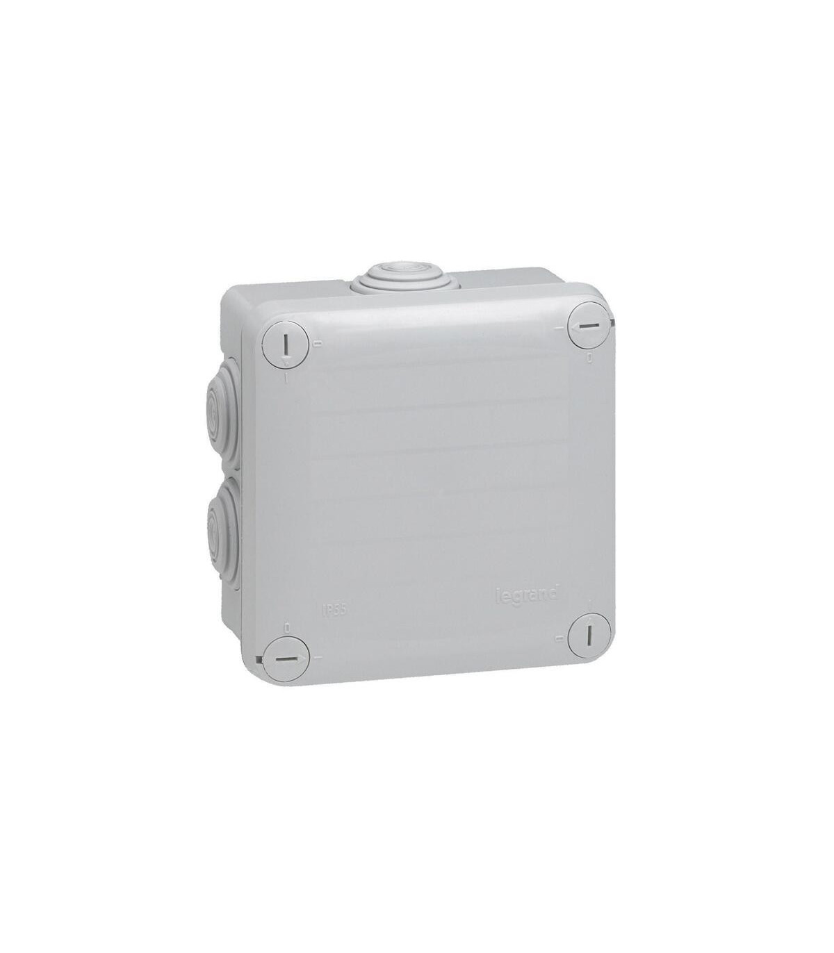 Caja estanca cuadrada de la gama Plexo IP55, con cierre por 1/4 de vuelta, IK 07, 650 °C, con temperatura de uso de -25 a +40 °C. Uso como caja de derivación en cualquier tipo de circuito de instalación normal (establecimientos abiertos al público según art. EL 10, vivienda e industria). 7 Conos (con zonas de marcado) intercambiables y tapa con cierre por 1/4 de vuelta, Ø cables y tubos admitidos 4 a 25mm. Los tapones de protección (incluidos) de los tornillos de fijación garantizan la clase II. 105 x 105 x 55mm. La caja Plexo 105x105x55 con 7 entradas (ref. 092022) de Legrand es un elemento de instalación eléctrica diseñado para proteger y organizar conexiones en entornos residenciales, comerciales o industriales. Fabricada en material plástico de alta resistencia, garantiza durabilidad, aislamiento eléctrico seguro y protección frente a impactos y polvo.Con sus siete entradas, permite la conexión ordenada de múltiples conductores, facilitando la distribución y el mantenimiento de las
