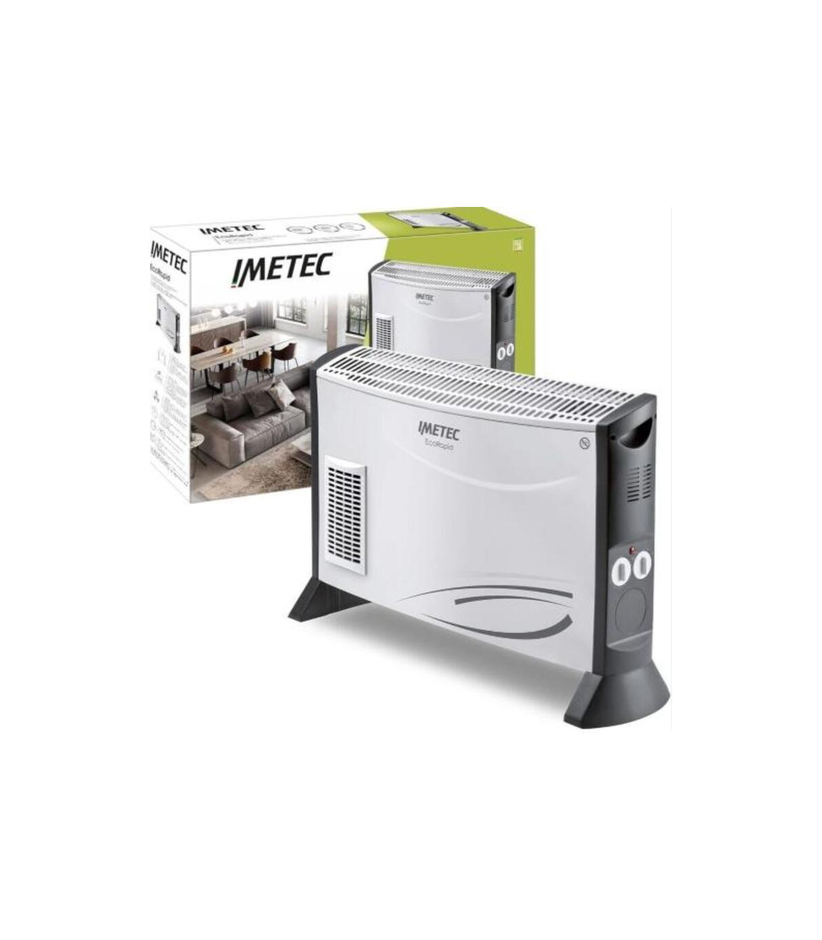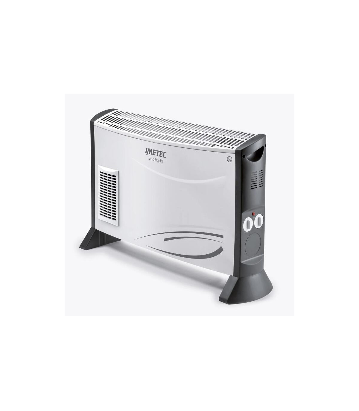 IMETEC ECO RAPID es el convector ideal para calentar rápidamente las habitaciones más grandes de la casa, con un ahorro energético del 40%* gracias a la función Eco que garantiza altas prestaciones con un bajo consumo energético, lo que redunda en beneficio del medio ambiente y se traduce en un ahorro en la factura. Se puede utilizar también en primavera y en otoño, cuando la calefacción centralizada no está funcionando, porque genera un calor muy agradable con 4 regulaciones de temperatura: Eco, medium, rapid, ultra rapid. Es muy silencioso, incluso a máxima potencia, y alcanza muy rápidamente la temperatura programada gracias a los 2000 W de la función Ultrarapid. El termostato ambiente mantiene constante el calor deseado. Pueda calentar habitaciones de hasta 65-70 m³. Máxima seguridad con termostato y termofusible de seguridad. * posición Eco (1200W) con respecto a la posición Ultra Rapid (2000W).