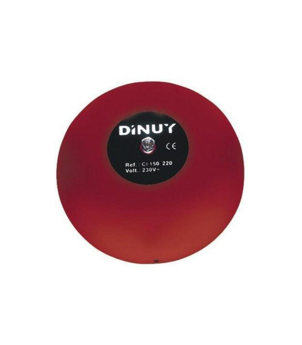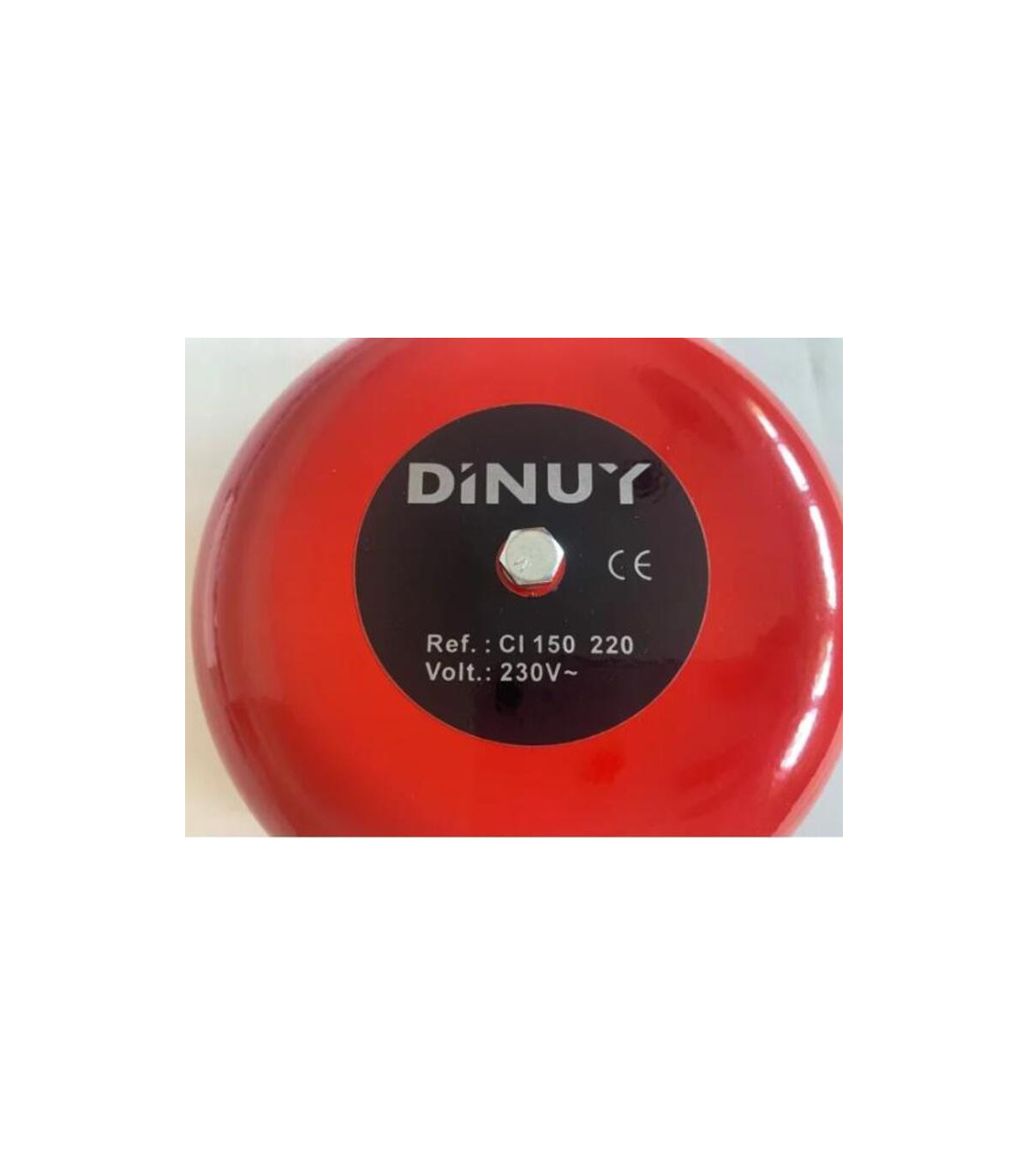 Timbre electromecánico 95dB / Ø150mm.Gran sonoridad, para usos industriales. Color rojo. Grado de protección ambiental: IP20. No válido para exterior. Consumo: 27mA CI 150 220 - Campana industrial de 15 cm de diámetro, diseñada para aplicaciones industriales y comerciales. Fabricada por Dinuy, esta campana destaca por su robustez y eficiencia, ideal para ventilación y extracción en espacios que requieren un flujo de aire potente y constante. Su construcción está pensada para resistir condiciones exigentes, garantizando durabilidad y un rendimiento óptimo en instalaciones industriales.Esta campana industrial es una solución confiable para mejorar la calidad del aire en entornos de trabajo, ayudando a eliminar humos, vapores o polvo. Su tamaño compacto de 15 cm permite una instalación versátil en diferentes sistemas de ventilación, facilitando la renovación del aire y contribuyendo a un ambiente laboral más saludable y seguro.