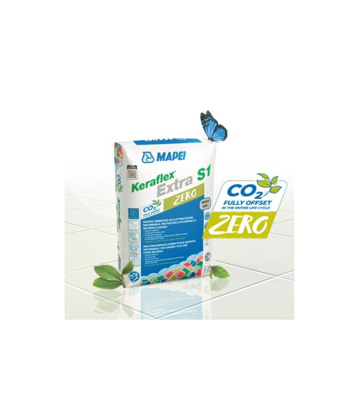 Adhesivo cementoso de altas prestaciones, deformable, de reología variable, con deslizamiento vertical nulo o con alta capacidad de impregnación, con tiempo abierto ampliado, con bajísima emisión de sustancias orgánicas volátiles y con emisión de Gases con Efecto Invernadero compensada, para baldosas cerámicas y piedra natural, incluso de gran formato.