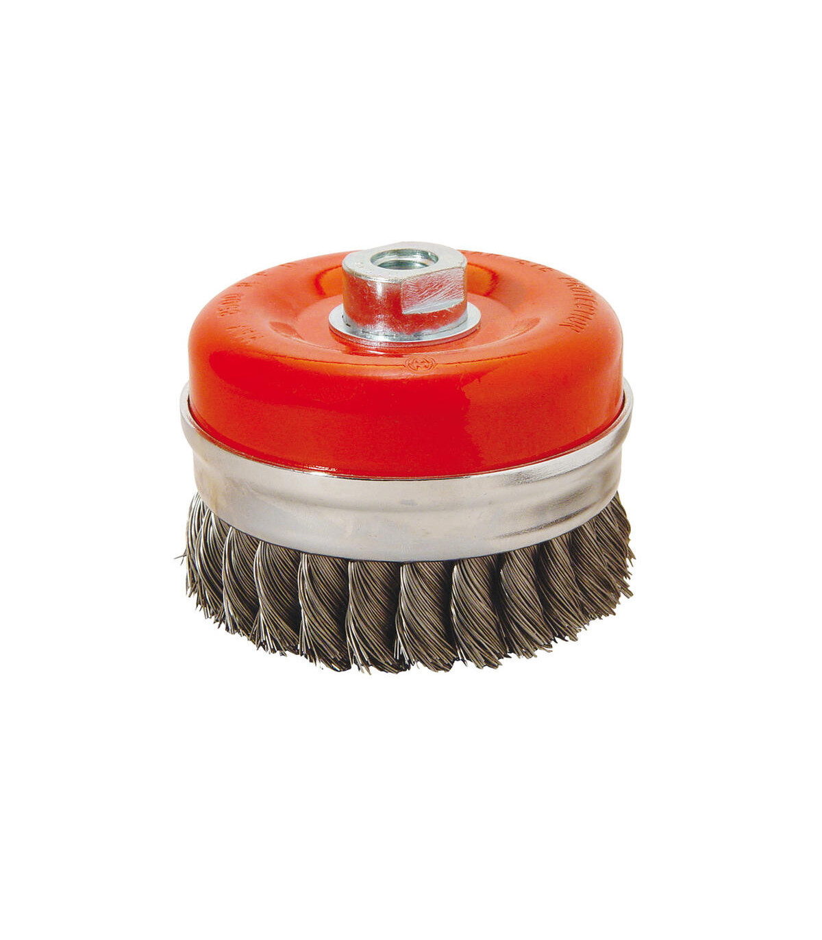 Cepillo taza alambre trenzado RATIO Alambre trenzado, acero templado. Casquillo roscado M14. ø 65 mm. ø púas 0,35 mm.