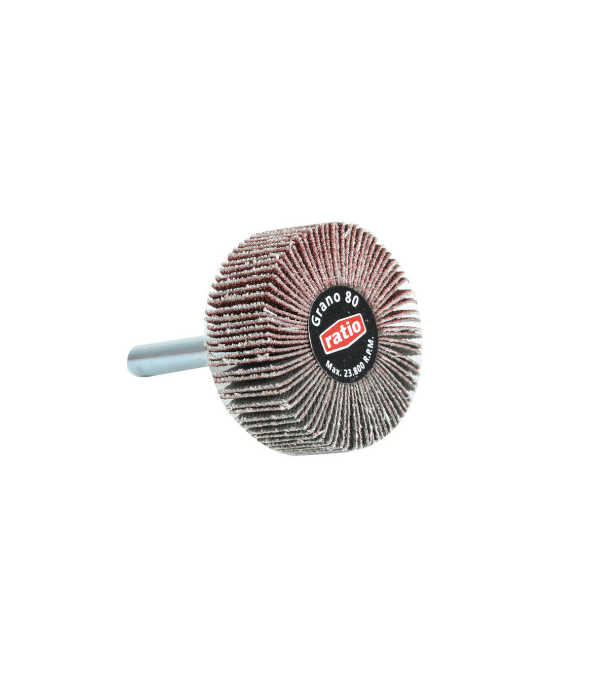 Cepillo abrasivo láminas con eje para taladro RATIO. Cepillo láminas profesional de Corindón. Vástago 6 mm. ø 60x20 mm. Gr