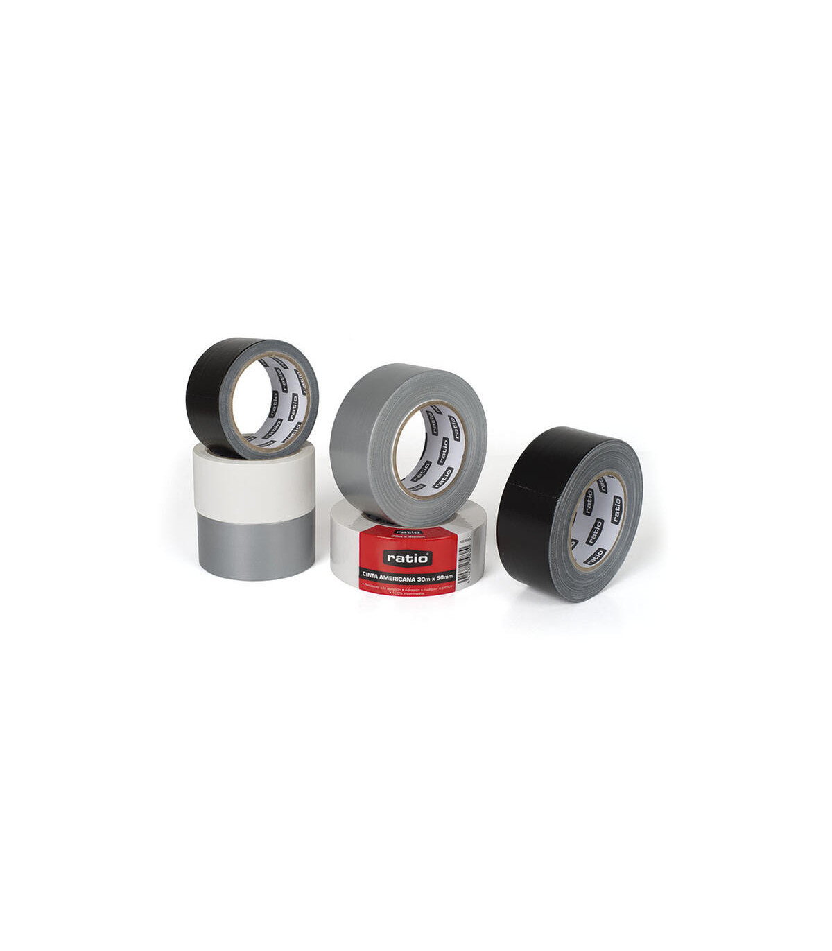 Cinta americana RATIO. Base de malla textil con recubrimiento de polietileno. Adhesivo de caucho de gran adherencia. 30 m x 50
