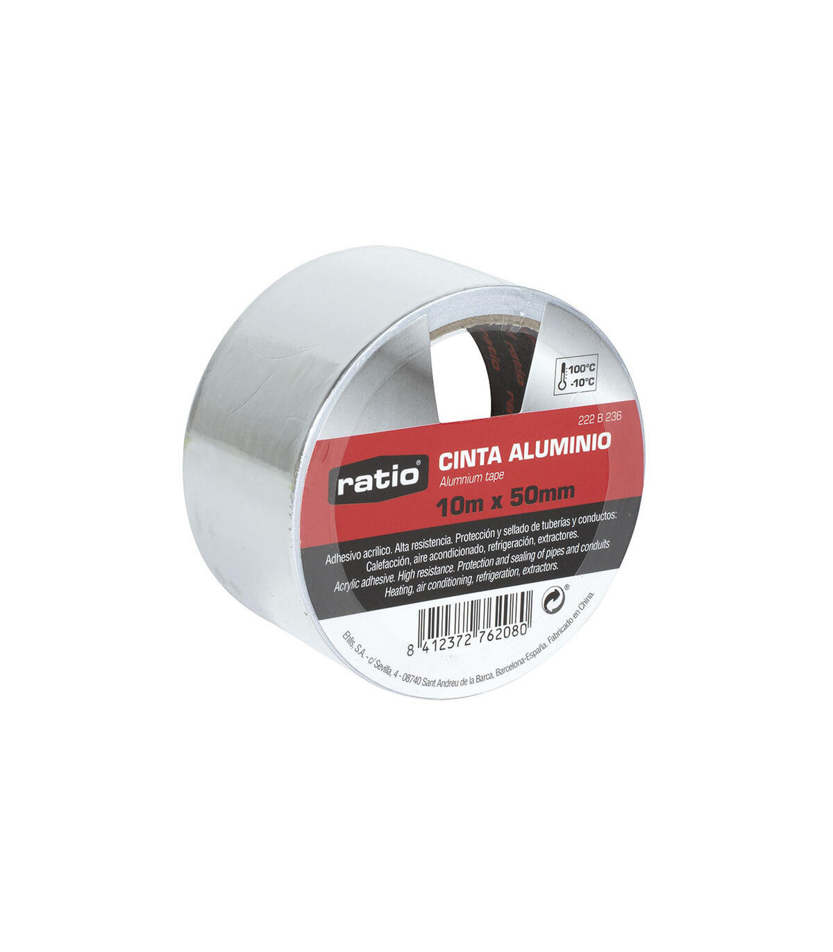 Cinta adhesiva de aluminio de 50 mm de ancho y 10 m de longitud, ideal para sellado, aislamiento y reparaciones. Ofrece una excelente resistencia al calor, la humedad y el envejecimiento. Proporciona una fuerte adherencia sobre superficies lisas como metal, conductos y sistemas de climatización. Indicada para aplicaciones en aislamiento térmico y trabajos técnicos. Modelo 222B236, apta para uso profesional y doméstico.