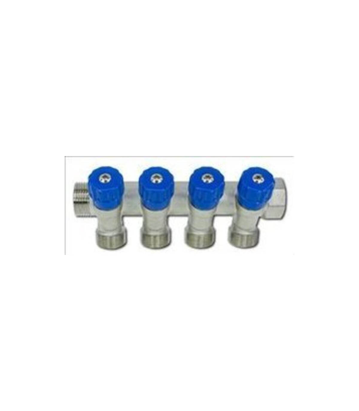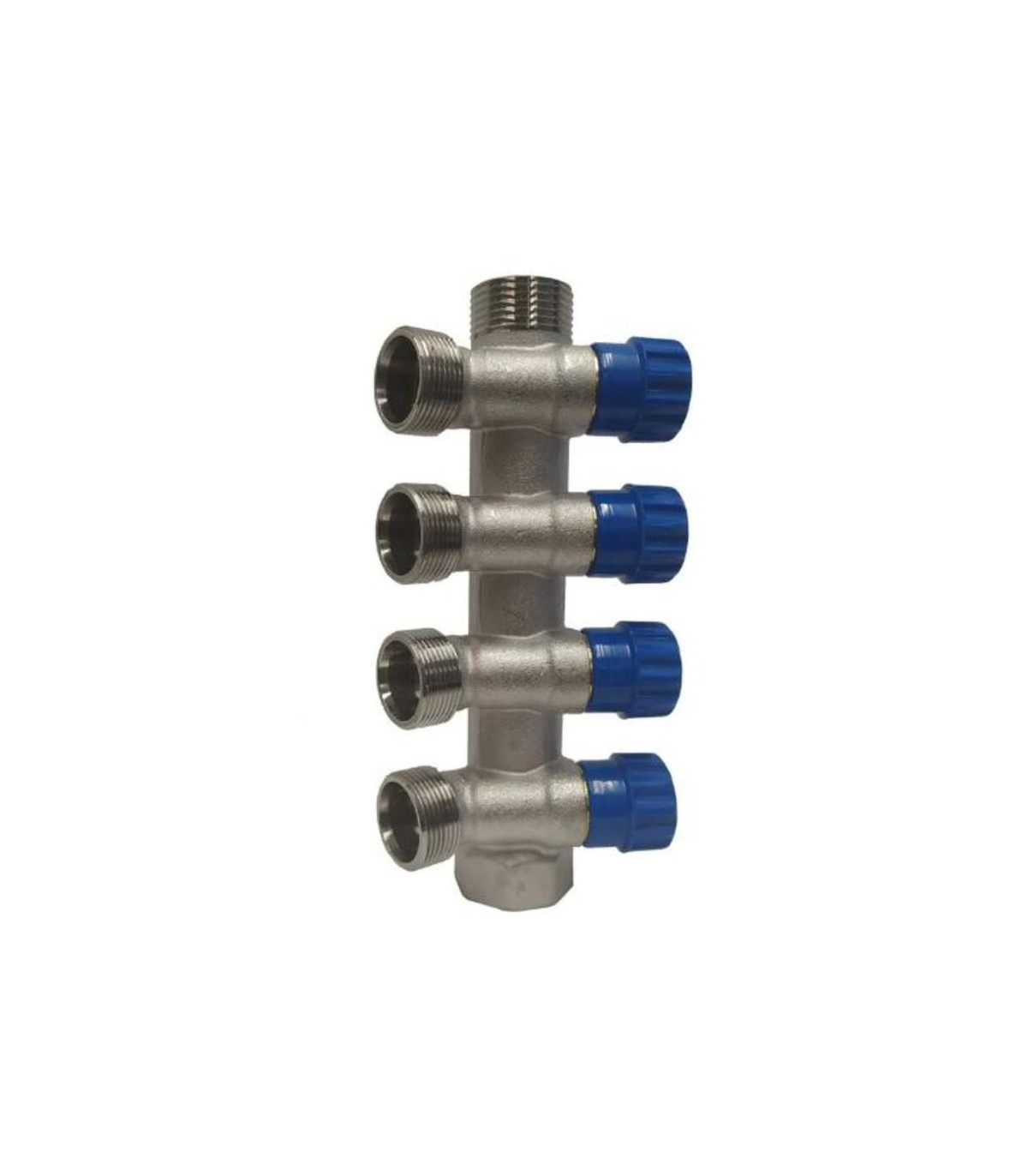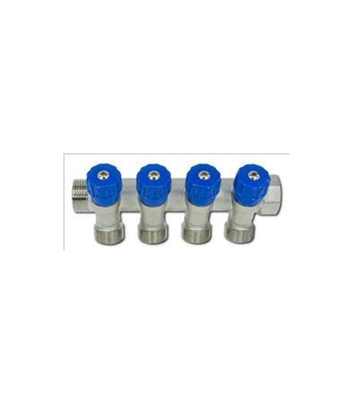 Colector Componible Niquelado con Válvula de Regulación GIGOL4VC. 3/4" x 4 Derivaciones Con Derivaciones a tubo. Macho 24 x 19. Temperatura máxima: + 110ºC. Distancia entre ejes 35 mm. Unidades de embalaje: 16. El colector GICOL 4VC de GUT está diseñado para ofrecer una solución eficiente y versátil en sistemas de calefacción, climatización y agua sanitaria. Con 4 derivaciones M 24x19, este colector permite distribuir el flujo de manera uniforme entre diferentes circuitos, facilitando la instalación y el control de cada ramal. Fabricado en material niquelado de alta resistencia, garantiza durabilidad, resistencia a la corrosión y un funcionamiento seguro incluso en condiciones de uso prolongado y temperaturas elevadas.Su diseño compacto y su compatibilidad con múltiples sistemas lo convierten en una opción práctica tanto para instalaciones domésticas como industriales. Además, su acabado niquelado no solo proporciona protección adicional, sino también una estética profesional que se in