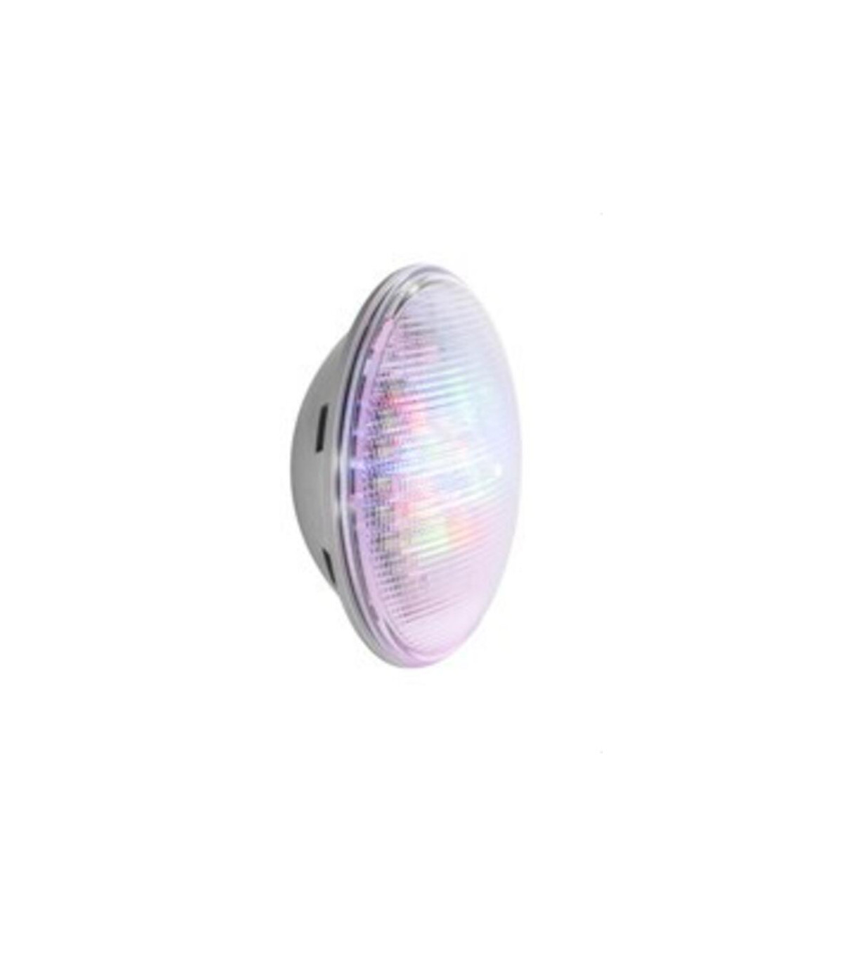 Lámpara LumiPlus PAR56 1.11 RGB. La LumiPlus 1.11 mejora la eficiencia energética respecto a la lámpara tradicional PAR56 halógena de 300W, ya que tiene una vida útil 100 veces superior y un consumo energético 12 veces inferior. Debe conectarse a 12V AC mediante un transformador de seguridad y siempre se debe encender sumergida totalmente en agua. Puede instalarse en cualquier proyector subacuático que contenga una lámpara PAR56. La lámpara LumiPlus 1.11 PAR56 no necesita cambiar los cables eléctricos de su piscina existente ya que se alimenta con 2 cables, como su lámpara PAR56 halógena. Las lámparas LumiPlus 1.11 PAR56 tienen una garantía total de 3 años. Ventajas: Fácil instalación, en 10 minutos lista para su uso. Ahorra hasta un 92% de energía gracias a la mayor eficiencia energética de esta tecnología. Cumple con los requisitos de eficiencia energética de las nuevas Directivas Europeas referentes a Diseño Ecológico aplicables a los Productos que utilizan Energía y que serán de ob