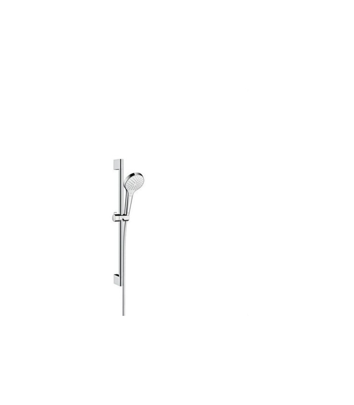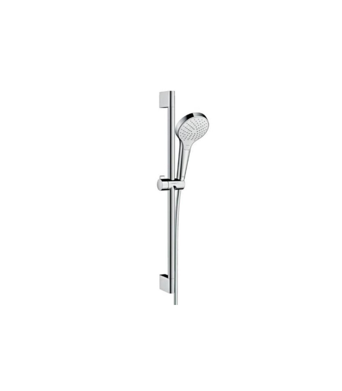 Set de ducha Vario Croma Select S con barra de ducha de 65 cm, que dispone de los tipos de chorro Intense Rain y Turbo Rain. El cabezal tiene un diámetro de 110 mm con caudal de 15 l/min aproximado a 3 bar. El material de montaje está incluido. El set de ducha Croma Select S Vario de Hansgrohe combina diseño moderno, funcionalidad intuitiva y confort en cada uso. Incluye una teleducha de 110 mm, barra de ducha de 65 cm, flexo de 1,60 m y soporte deslizante ajustable. Gracias a la tecnología Select, puedes cambiar fácilmente entre sus tres tipos de chorro —Rain, IntenseRain y TurboRain— con solo pulsar un botón, adaptando la experiencia a tu estado de ánimo. Su acabado blanco/cromo aporta un toque elegante y contemporáneo al baño, ideal para quienes buscan estilo y practicidad.
