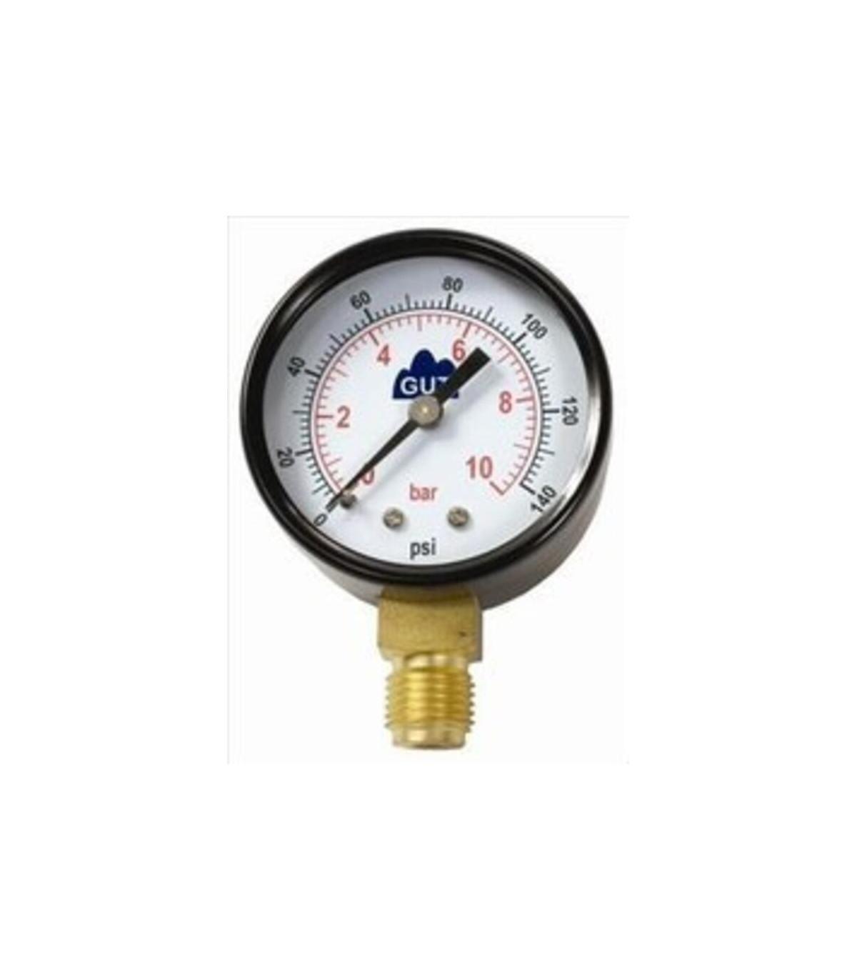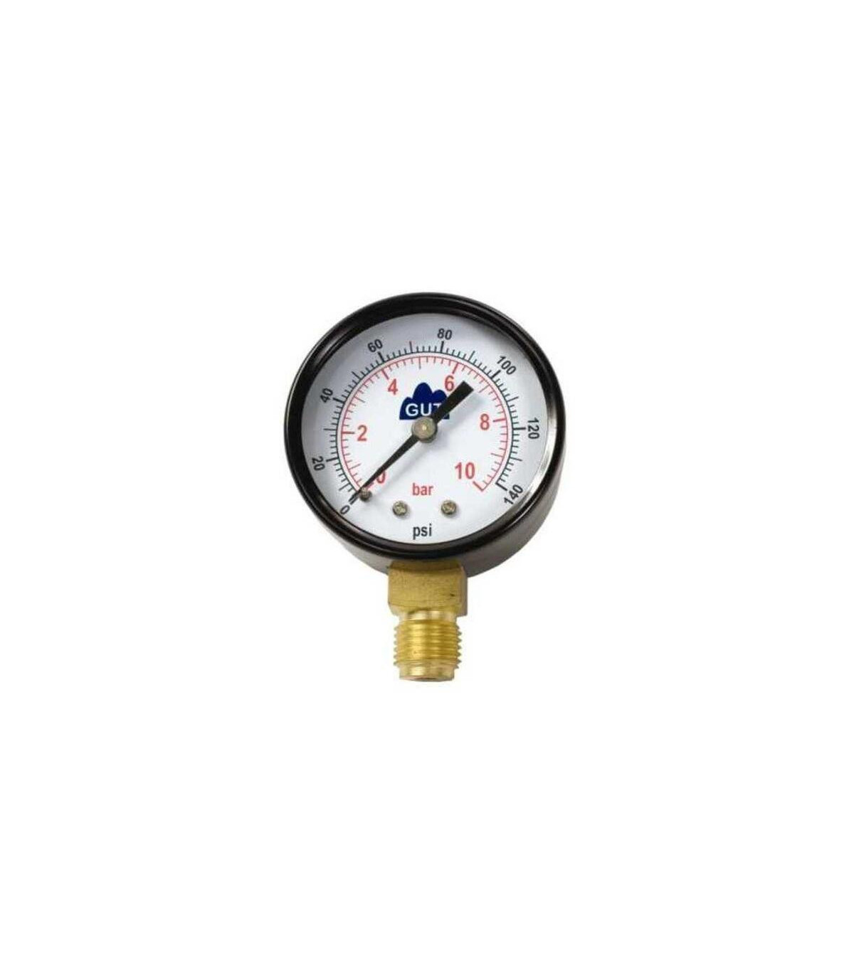 Manómetro salida inferior Y50RAD 50 mm de diámetro 0,10 kg/ cm2. Lacado en negro, con aguja de ajuste manual Unidad de embalaje: 50 unidades. El manómetro Y50 RAD de GUT, con salida inferior, está diseñado para proporcionar mediciones precisas de presión en sistemas industriales y domésticos. Este instrumento combina fiabilidad y resistencia, garantizando un rendimiento estable en diversas aplicaciones, desde instalaciones de calefacción hasta sistemas de agua y aire comprimido. Su diseño robusto permite soportar condiciones de trabajo exigentes, asegurando durabilidad y seguridad en el tiempo.Equipado con esfera clara y graduación precisa, el manómetro facilita la lectura rápida y exacta de la presión, mejorando la eficiencia y control del sistema. La salida inferior permite una instalación cómoda y adaptable en espacios reducidos, mientras que sus materiales de alta calidad aseguran resistencia a la corrosión y al desgaste. Es una opción confiable para profesionales que buscan instru