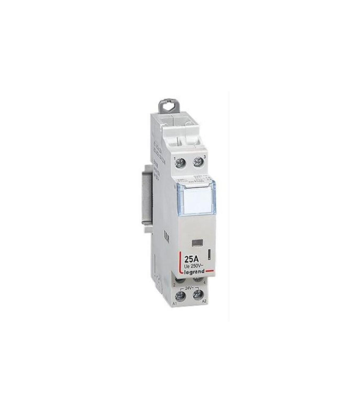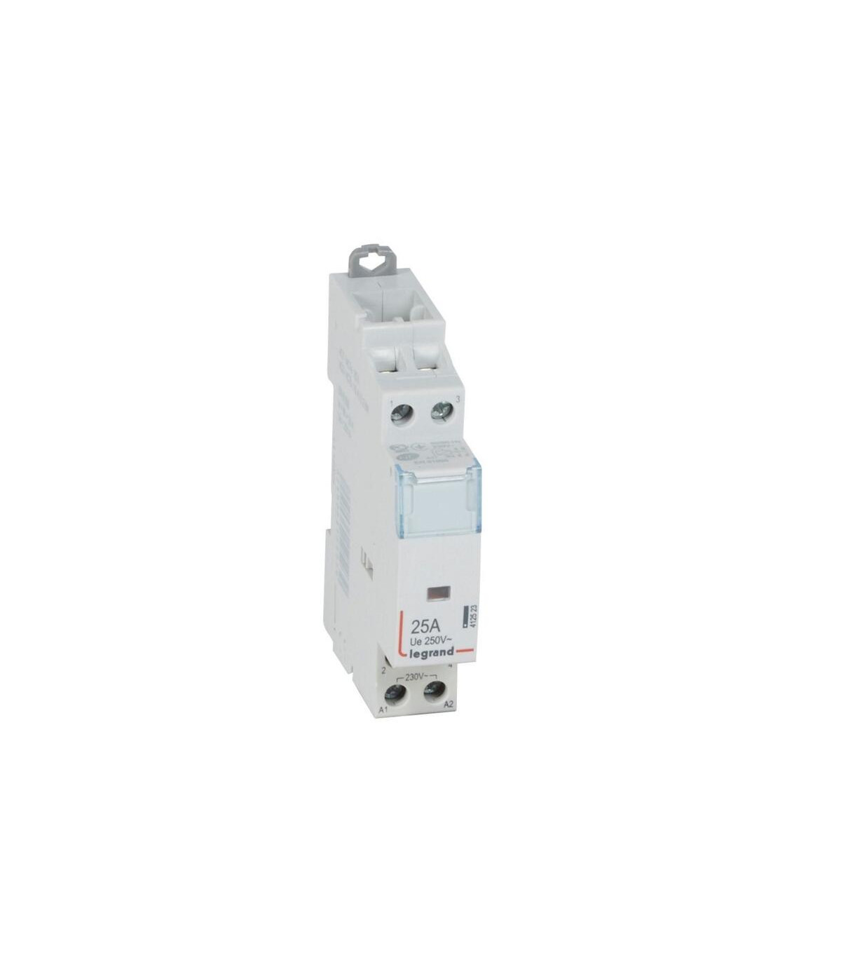Contactor 25A 2NA 230V. Contactores con bobina 230 V~ Bipolares 250 V~ - I máx.: 25A - Tipo de contacto: 2 NC - Número de módulos: 1. CX³ contactores - sin mando manual - Cumplen la norma EN 61095 - Aceptan el paso del peine de alimentación hasta 25A - Montaje sobre perfil simétrico. Contactor bipolar de la gama CX³ de LEGRAND, diseñado para aplicaciones de automatización y control en instalaciones eléctricas residenciales, comerciales e industriales. Equipado con bobina de 230V~ y dos contactos normalmente abiertos (2NA), permite la conmutación segura de cargas hasta 25A.