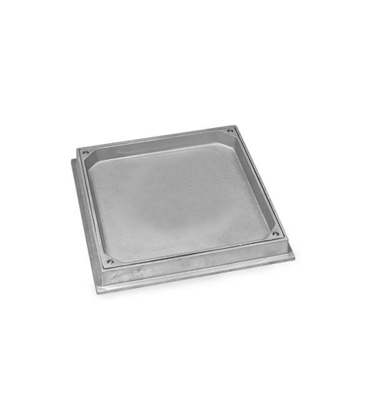 Conjunto de marco y tapa fabricado en aluminio de alta resistencia, diseñado para cubrir y proteger accesos a instalaciones de agua potable. Su formato rectangular de 300×400 mm lo hace ideal para zonas urbanas, comerciales o residenciales donde se requiere una solución ligera, duradera y resistente a la corrosión.