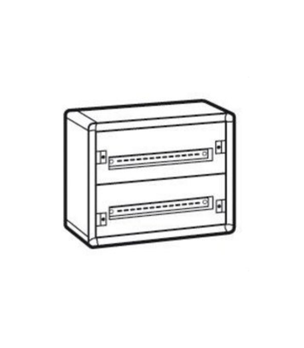 Caja XL³ 160 superficie metal 2 filas. Caja de distribución modular metálica, de superficie - Admite los DPX³ 160 - Aparatos modulares, Vistop inferior o igual a 125A - Número de filas: 2 - Número de módulos: 48 - Altura: 450mm - Anchura: 575mm - Fondo: 147mm. XL³ 160 - cajas de distribución metálicas «listas para usar» - Resistencia al fuego según IEC 60695-2-11: 750 °C - chasis extraíble con perfiles simétricos montados - barra de latón para conductores de protección montada: 36 taladros de 1,5 a 10 mm² y 2 taladros de 35 mm² - Capacidad 24 módulos por fila - RAL 7035 - Suministrados completos con perfiles y tapas cubrebornas - Las puertas deben pedirse por separado - Permiten realizar conjuntos certificados según UNE EN 61439-2 y -3 - IP 43 - IK 08 con junta y puerta, IP 40 - IK 08 con puerta, IP 30 - IK 07 sin puerta - Flancos laterales desmontables. Parte superior e inferior desmontables y divisibles para insertar la placa pasacables recortable (pedir por separado).