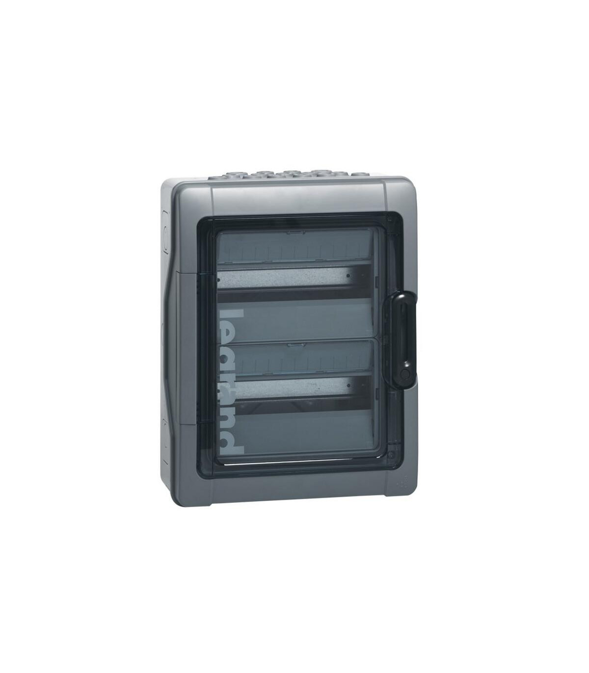Caja Modulo estanca IP65 2x12 Modulo. Caja modular estanca 12 módulos por fila - Número de filas: 2. Plexo³- IP 65 cajas modulares estancas, celdas multifunción y accesorios - Auto extinguibles: resistencia al hilo incandescente 650?C - Conforme a EN 60439-3. Permite realizar montajes conforme a IEC 61 439 - 3 - Armarios estancos - IP 65 - IK 09 - Clase II - Puerta y armario totalmente reversible. Chasis y placas cubrebornas extraibles a partir de la versión de 2 filas - perfil de 2 posiciones para productos modulares y caja moldeada. Distancia entre carriles 150 mm - Pueden equiparse con pletinas perforadas y placas ciegas para montar productos no modulares - Maneta equipable con cerradura, marco y tapas precintables Material: poliestireno resistente a golpes - Caja de color gris claro L750A, tapa de color gris oscuro R746A - Se suministra sin bornas de conexión . La caja de módulo estanca IP65 de Legrand, referencia 601832, está diseñada para proteger módulos eléctricos y electrónico