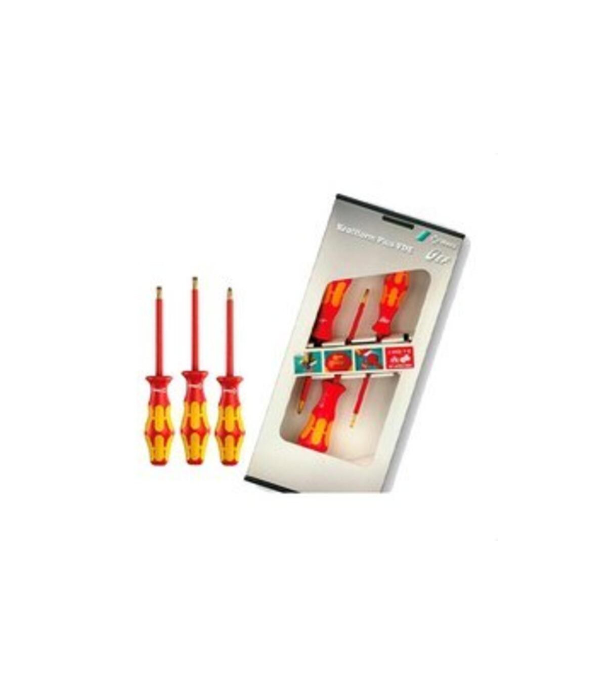 Conjunto K3 de 3 destornilladores planos/Philips aislados VDE 1000V. Conjunto compuesto por: 2 destornilladores aislados planos y 1 destornillador aislado Philips. El Conjunto K3 de 3 destornilladores de la Serie Oro de HT-Instruments és un kit professional d’eines de precisió, dissenyat per a treballs elèctrics, mecànics i de manteniment general. Cada destornillador està fabricat amb materials d’alta qualitat, garantint resistència, durabilitat i rendiment òptim en qualsevol tasca.Els destornilladores de la Serie Oro ofereixen punta precisa i segura, assegurant un ajust perfecte sobre cargols de diferents tipus, evitant lliscaments i danys tant al cargol com a la peça de treball. Aquest conjunt és ideal per a instal·lacions professionals, ajustaments delicats i reparacions que requereixen fiabilitat i control total.El mànec ergonòmic i antilliscant proporciona comoditat i seguretat durant llargues jornades de treball, permetent aplicar la força necessària sense perdre precisió. Així m