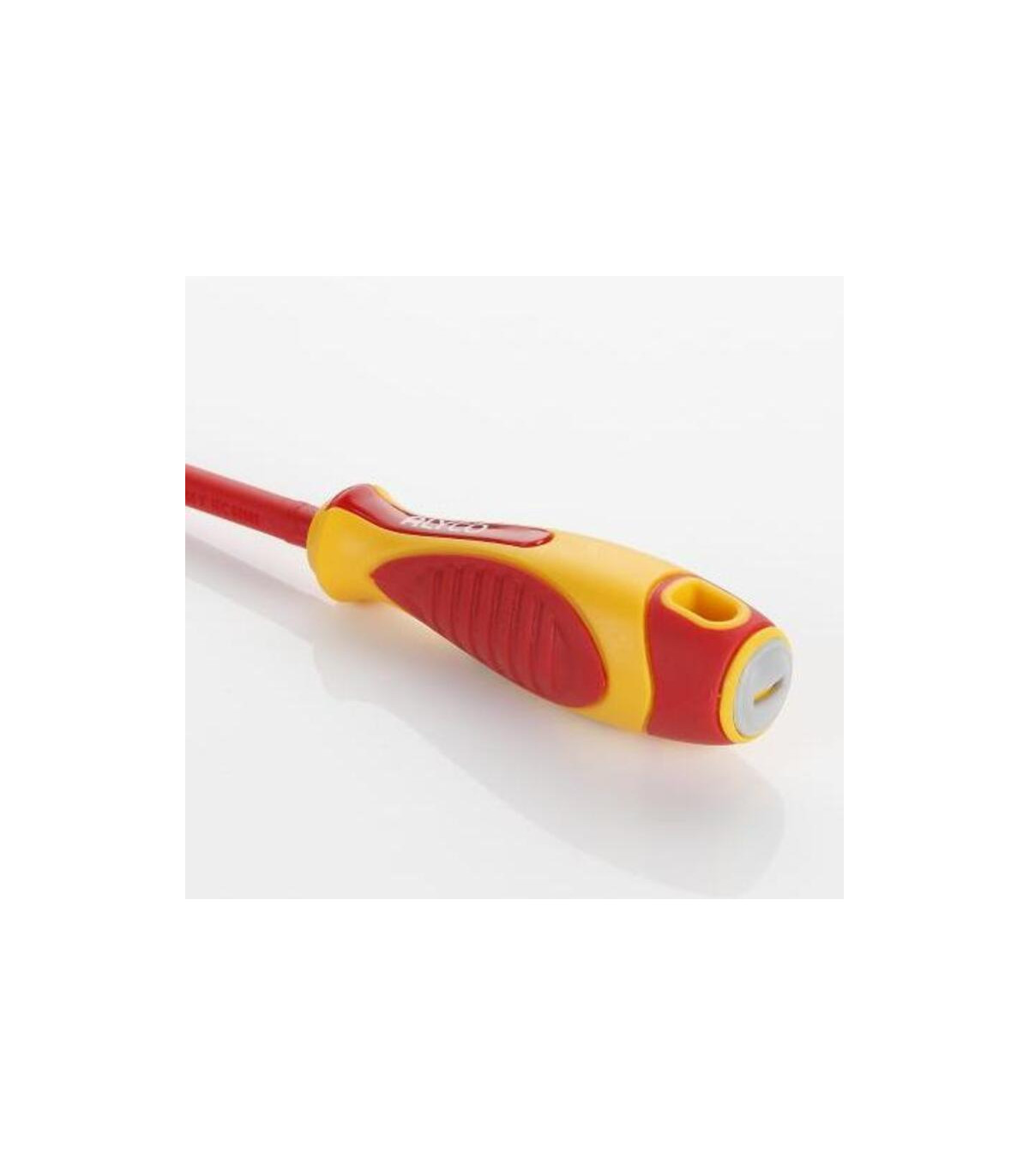 El Destornillador Aislado Boca Plana 24,0 x 0,8 x 100 – Alyco (Ref. 119304) es una herramienta diseñada para trabajos eléctricos y mecánicos que requieren seguridad y precisión. Su aislamiento garantiza protección frente a descargas eléctricas, mientras que su punta plana de 0,8 mm permite un encaje exacto en tornillos de pequeño tamaño, ofreciendo un ajuste seguro y evitando daños en las superficies de trabajo.Fabricado con materiales de alta calidad, este destornillador combina resistencia y durabilidad para un uso prolongado, incluso en entornos exigentes. Su mango ergonómico facilita un agarre cómodo y firme, proporcionando control y seguridad en cada giro, convirtiéndolo en una herramienta indispensable para profesionales y aficionados que buscan precisión, eficiencia y protección en sus labores.