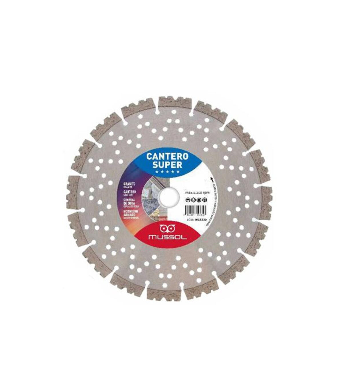 El disco de diamante Cantero Súper WCS230 de 230 mm de diámetro y eje de 22,2 mm está diseñado para corte en seco de materiales de alta dureza como granito, basalto, hormigón armado, ladrillo clínker, cerámica de vidrio duro y piedra natural. Su segmentación diamantada y núcleo reforzado permiten cortes precisos, rápidos y con menor vibración, lo que mejora la seguridad y la comodidad durante el trabajo. Además, incorpora perforaciones de ventilación que ayudan a reducir el sobrecalentamiento y prolongan la vida útil del disco.