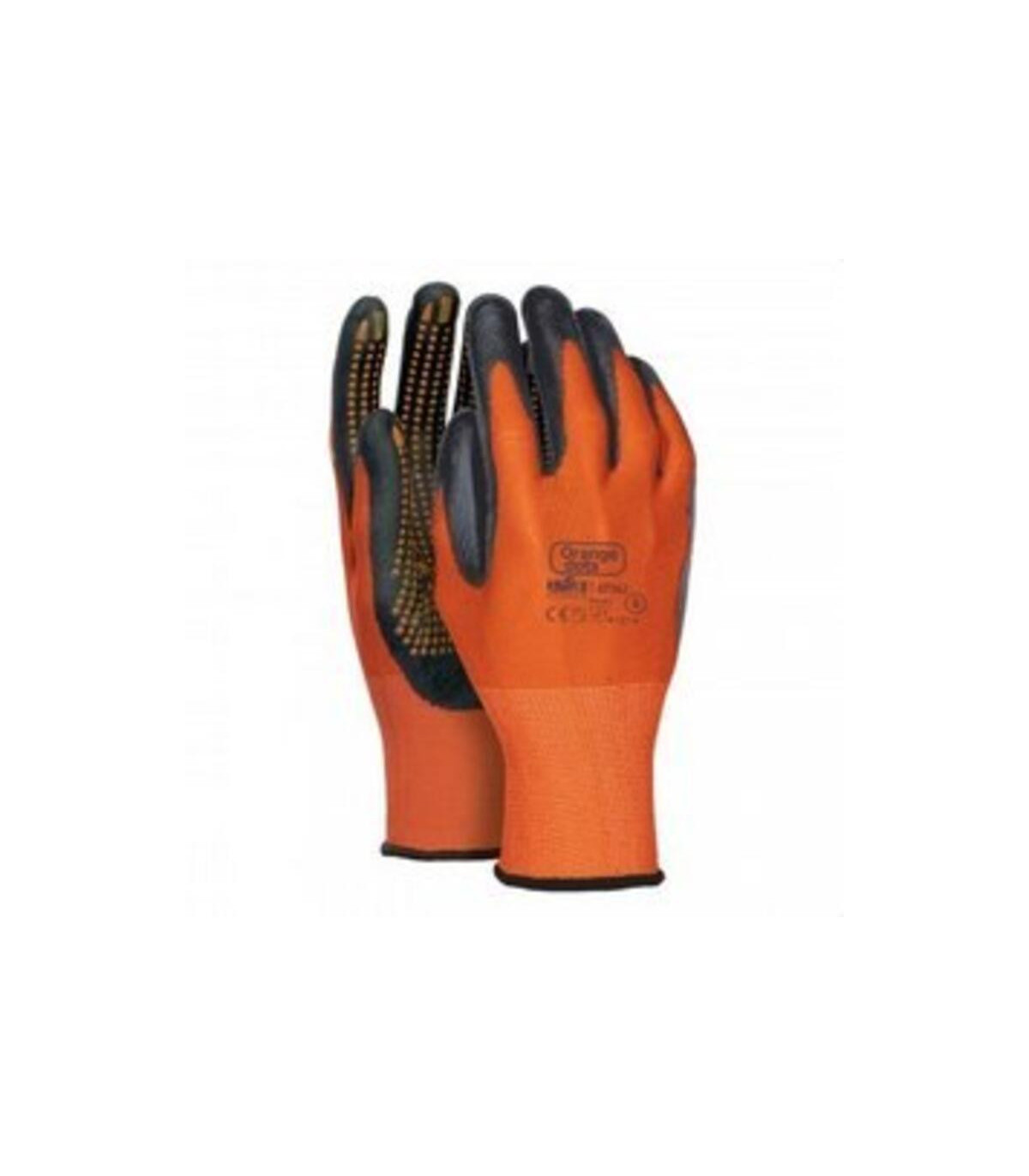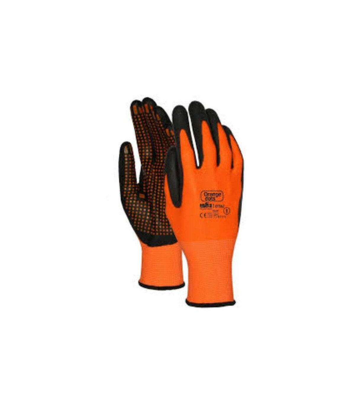 Guantes ORANGE DOTS CATCH de la talla 8, en hilo continuo poliéster/spandex de 13 agujas con recubrimiento en nitrilo foam. Los puntos antideslizamiento de la palma garantiza un excelente agarre incluso manipulando objetos húmedos. Los guantes Orange Dots Catch talla 8 de Industrial Starter están diseñados para ofrecer protección y comodidad en trabajos industriales y manuales. Fabricados con materiales resistentes, estos guantes cuentan con puntos antideslizantes de color naranja en la palma y los dedos, lo que mejora el agarre y la seguridad al manipular objetos.Ideales para tareas que requieren destreza y precisión, estos guantes proporcionan una excelente ventilación y flexibilidad, adaptándose bien a la mano para un uso prolongado sin incomodidades. Son una opción confiable para proteger las manos en entornos laborales exigentes, combinando funcionalidad y durabilidad.