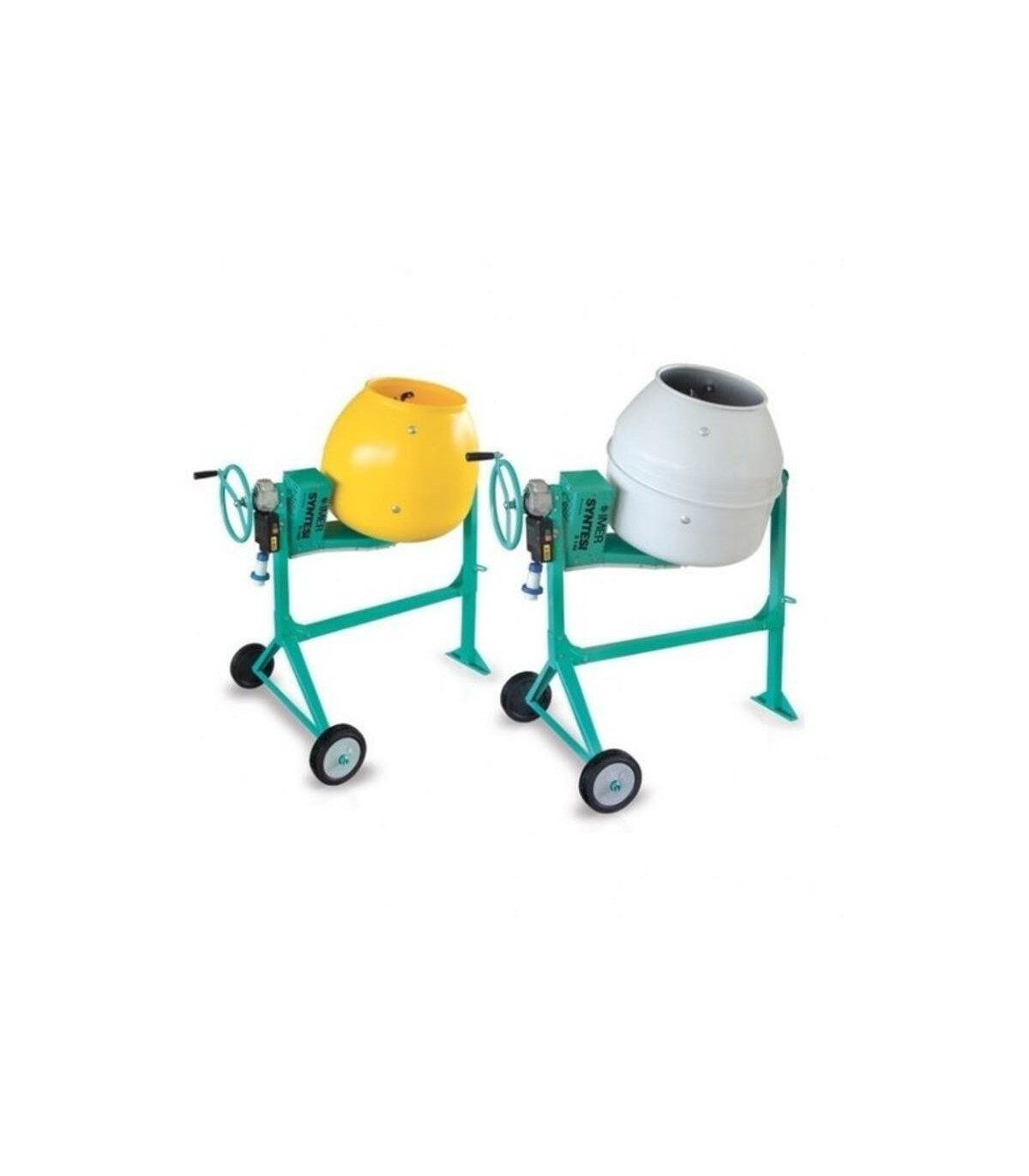 Hormigonera SYNTESI-140 monofásica. Gracias a sus volantes de tipo sinfín, reducen al máximo el esfuerzo personal del operario durante su basculación, permitiendo a su vez este sistema posicionar las cubas de amasado con la inclinación exacta y precisa. La serie Syntesi revoluciona por completo el concepto de la hormigonera convencional. El sistema de rotación de su cuba de amasado, mediante motorreductor patentado con correa de alta resistencia, la hace única y exclusiva en el mercado nacional e internacional. La hormigonera IMER Syntesi 140 monofásica (Ref. IM1-1105600) es una solución profesional para trabajos de mezcla en obras pequeñas y medianas. Con una capacidad de cuba de 140 litros y una capacidad de amasado de aproximadamente 100 litros, esta hormigonera destaca por su transmisión directa y su diseño super silencioso, con un nivel sonoro de solo 72 dB, lo que permite su uso en interiores sin molestias.
