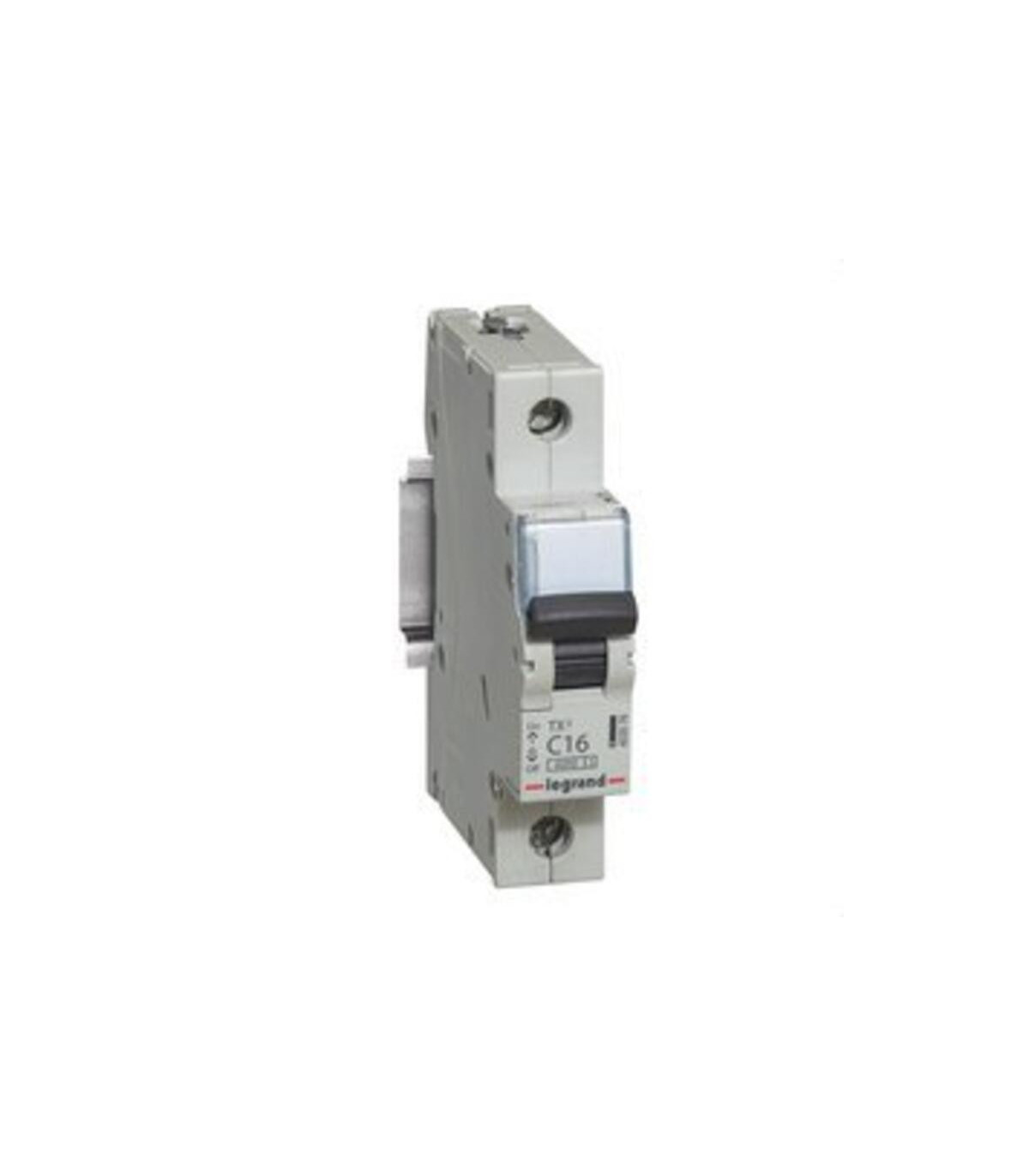 Magnetotérmico TX3 6KA-C 1 polo 16A. Interruptor automático magnetotérmico TX³ Unipolar 230/400 V~ - Curva C - Intensidad nominal: 16A - Número de módulos: 1. magnetotérmicos TX³ - interruptores automáticos de 6A a 40A - curva C - Poder de corte 6000A- Conforme a UNE EN-60898-1 - Conexión con bornas protegidas contra los contactos directos (IP20) - Tornillos imperdibles - Portaetiquetas incorporado - Capacidad de embornamiento: 25 mm² flexible/35 mm² rígido - Se pueden equipar con mandos motorizados y auxiliares de mando y señalización DX³ . El magnetotérmico TX³ 6kA-C 1P 16A de Legrand es un interruptor automático diseñado para proteger instalaciones eléctricas frente a sobrecargas y cortocircuitos. Su tecnología térmico-magnética garantiza una actuación rápida y fiable ante cualquier fallo eléctrico, asegurando la seguridad de hogares, oficinas e instalaciones industriales. Con una capacidad de interrupción de 6 kA, ofrece un alto nivel de protección incluso en redes con corrientes d