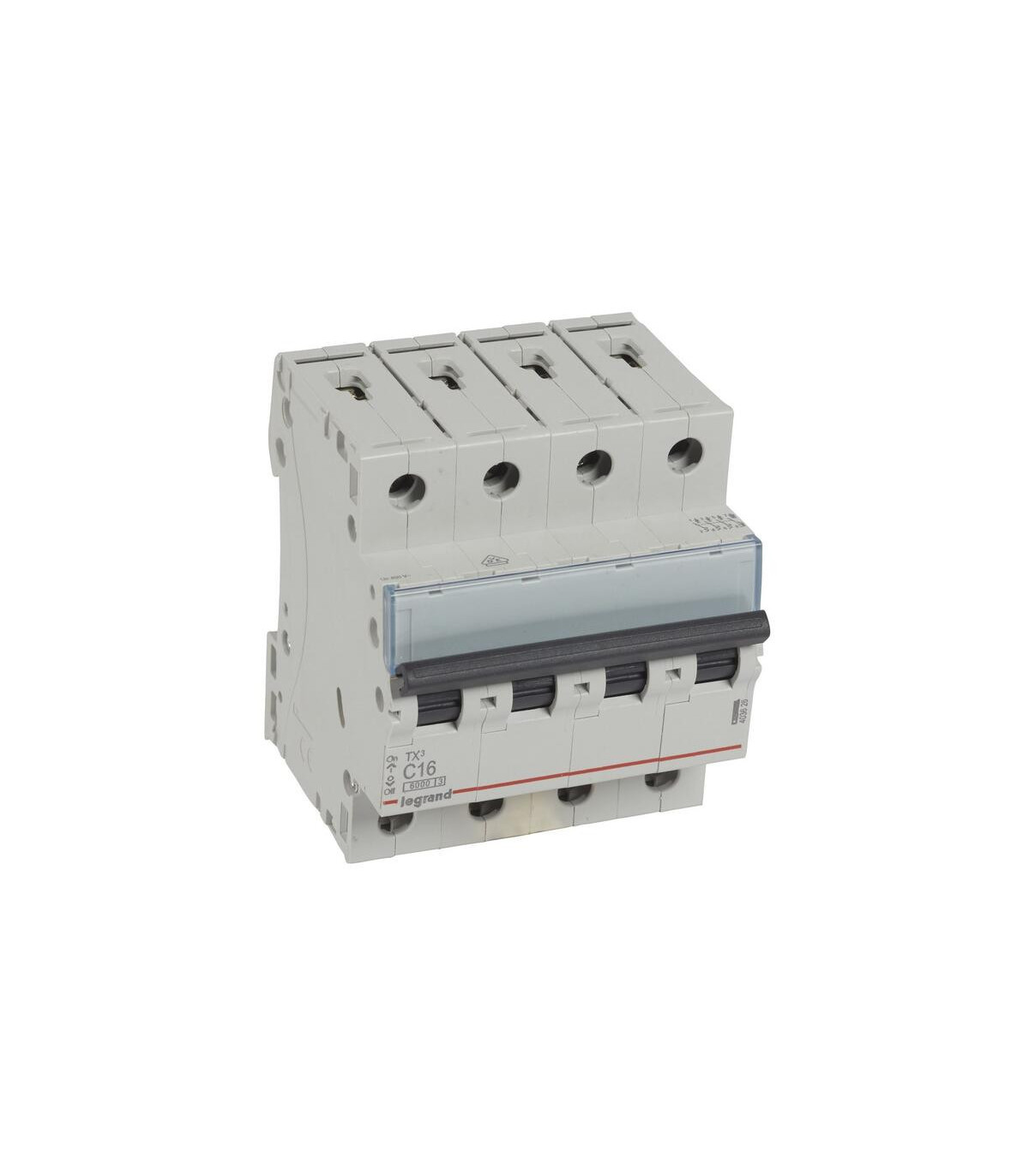 Magnetotérmico TX3 6KA-C 4 polos 16A. Interruptor automático magnetotérmico TX³ Tetrapolar 400 V~ - Curva C - Intensidad nominal: 16A - Número de módulos: 4. magnetotérmicos TX³ - interruptores automáticos de 6A a 40A - curva C - Poder de corte 6000A- Conforme a UNE EN-60898-1 - Conexión con bornas protegidas contra los contactos directos (IP20) - Tornillos imperdibles - Portaetiquetas incorporado - Capacidad de embornamiento: 25 mm² flexible/35 mm² rígido - Se pueden equipar con mandos motorizados y auxiliares de mando y señalización DX³ . El magnetotérmico TX3 4P C 16 A de Legrand, con poder de corte de 6 kA, está diseñado para proteger instalaciones eléctricas trifásicas frente a sobrecargas y cortocircuitos. Su tecnología avanzada asegura un disparo rápido y fiable ante cualquier anomalía, protegiendo tanto los conductores como los equipos conectados, garantizando la seguridad y continuidad del suministro eléctrico en entornos residenciales, comerciales o industriales.Fabricado con
