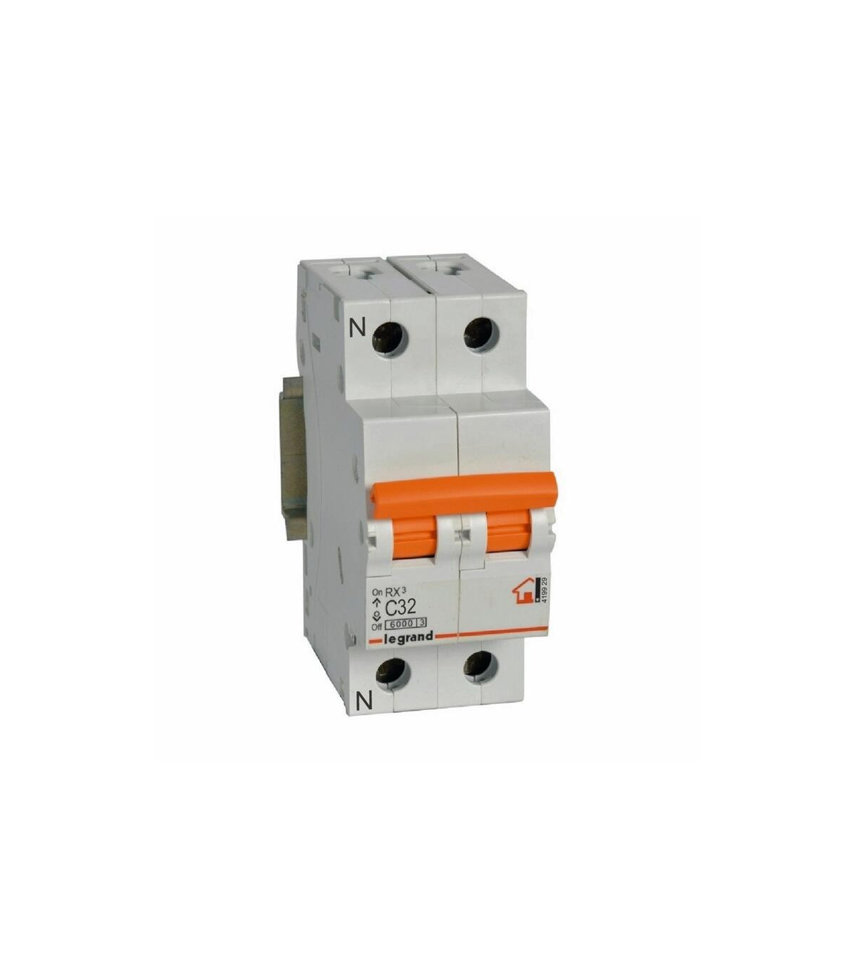 Interruptor magnetotérmico RX³ para vivienda, 1P+N 230 V, 32A, 2 módulos de 17,5 mm, curva C, poder de corte 6000 A, UNE-EN 60898-1. Equipado con tornillos imperdibles y de cabeza mixta, capacidad de embornamiento: 25 mm² flexible/35 mm² rígido. Interruptor automático magnetotérmico de la serie RX³ de LEGRAND, diseñado para proteger instalaciones eléctricas residenciales contra sobrecargas y cortocircuitos. Su configuración de 1 polo + neutro (1P+N) lo hace ideal para circuitos monofásicos, ofreciendo una protección eficaz y segura.