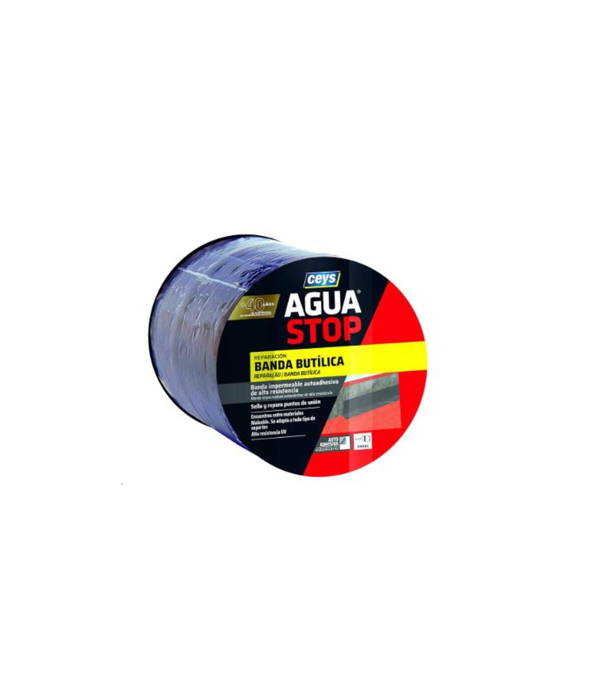 Banda impermeabilizante butílica AGUA STOP 15cm gris 10m (bolsa), autoadhesiva en frío para reforzar zonas de la cubierta y repara grietas y fisuras en seco. 100% Impermeable al agua. Resiste temperaturas extremas Alta resistencia a los rayos UV. Flexible, incluso a bajas temperaturas (hasta -30ºC). La Banda Impermeabilizante Butílica Agua Stop de Ceys (15 cm x 10 m, color gris) es una solución autoadhesiva diseñada para sellar y proteger superficies frente al agua y la humedad. Fabricada con caucho butílico, se adapta a diferentes materiales y soportes, garantizando una impermeabilización eficaz y duradera.Su aplicación en frío, rápida y sencilla, permite reparar filtraciones, juntas y grietas en cubiertas, terrazas, canalones o claraboyas sin necesidad de herramientas especiales. Con gran resistencia a las inclemencias del tiempo y a la radiación UV, ofrece un sellado flexible y estanco, ideal tanto para uso profesional como doméstico.