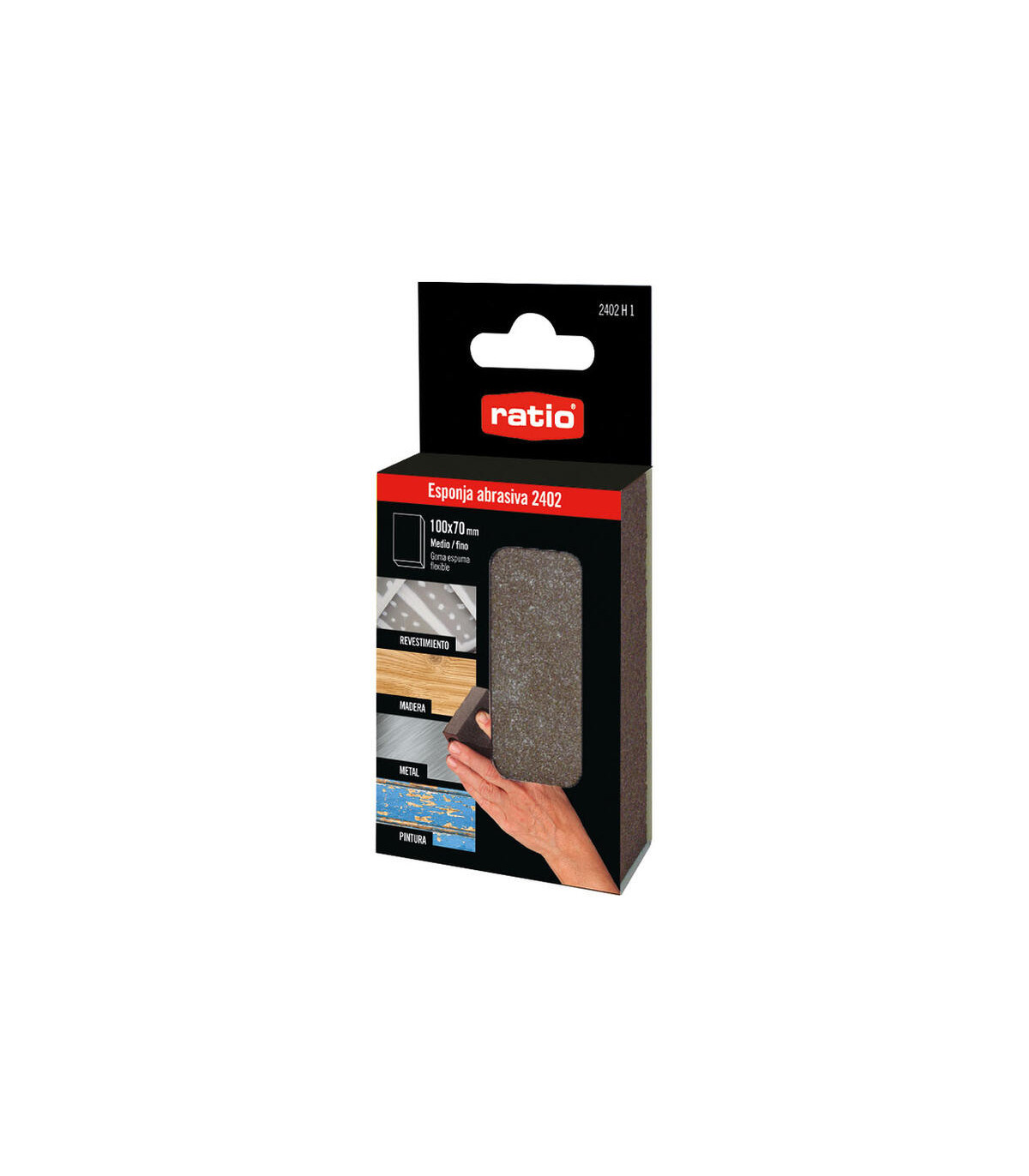 Abrasivo medio/fino RATIO modelo 2402H1, ideal para trabajos de lijado y preparación de superficies. Permite eliminar imperfecc