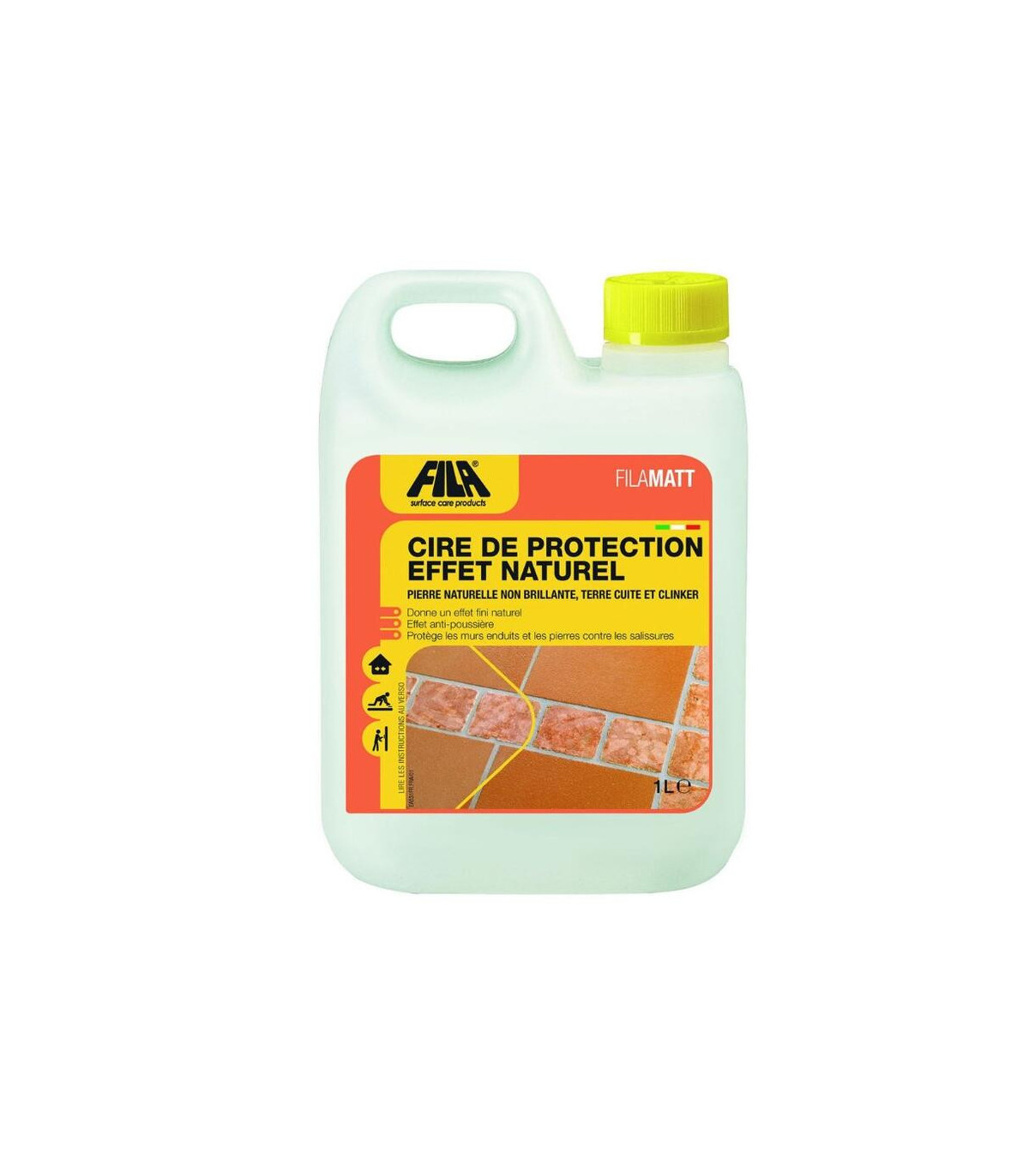 MATT CERA PROTECTORA CON EFECTO MATE para qué sirve Protege los pavimentos interiores de barro, gres extrusionado y piedra natural rústica contra el desgaste del tránsito y contra la suciedad, suavizando la textura, facilitando el mantenimiento e impartiendo un acabado natural mate. Ideal como tratamiento de acabado de impermeabilizantes en base acuosa. Ideal para evitar el despolvoreo de paredes interiores de piedra natural, ladrillos cara vista, conservando el aspecto original mate.