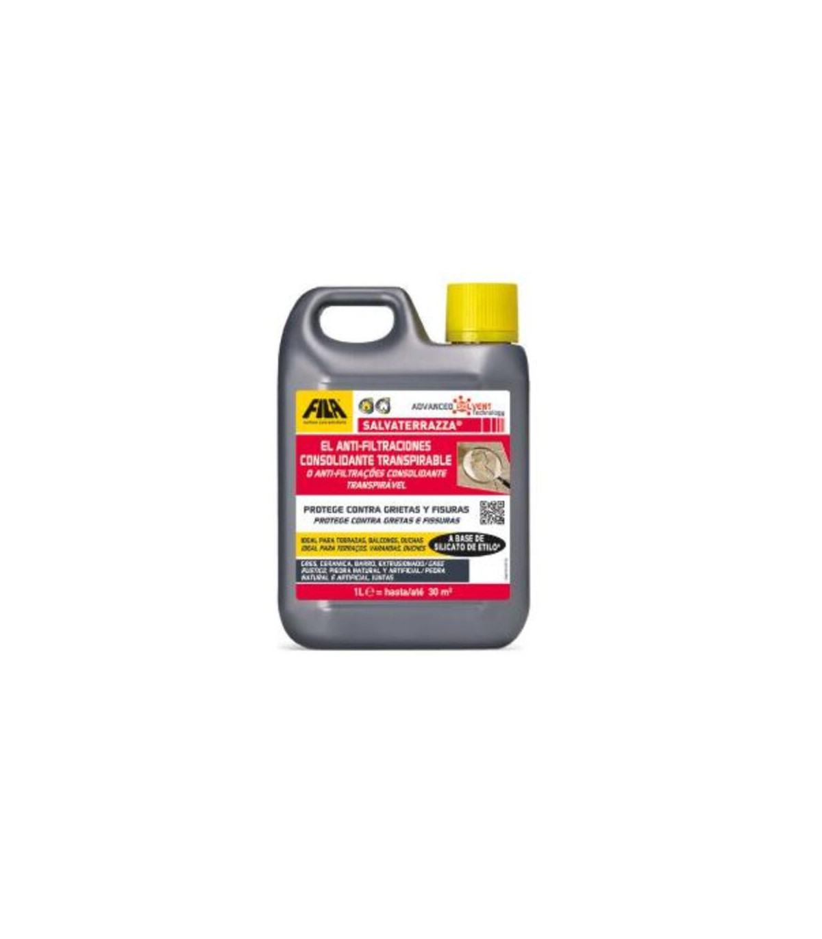 Producto sin stock temporalmente. Nos pondremos en contacto para confirmar fecha de entrega El Protector Consolidante Antifiltraciones Salvaterrazza de FILA, en formato de 1 litro, es un producto especialmente diseñado para proteger superficies de terrazas, azoteas y exteriores frente a la acción del agua, evitand