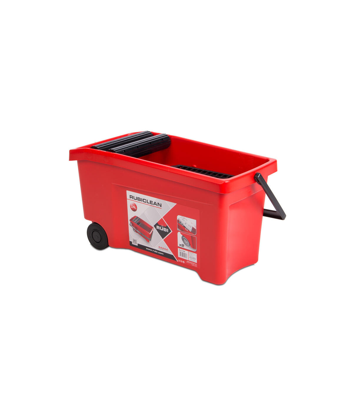 La cubeta Rubi Clean Superpro es ideal para la limpieza de todo tipo de superficies, y está especialmente recomendada para la limpieza después de los trabajos de colocación de baldosas cerámicas (rejuntado y entrega de obra). La cubeta Rubi Clean Superpro está fabricada en polipropileno (PP) inyectado, para ofrecer al usuario una cubeta ligera y de alta resistencia. Está equipada con 2 rodillos escurridores estriados y de gran resistencia, para facilitar la operación de escurrido, y conseguir así, una mayor evacuación de agua dejando las esponjas con el nivel óptimo de humedad. Los soportes de los rodillos están reforzados, para darles una mayor resistencia a la presión durante las repeticiones del escurrido. La Cubeta RubiClean 52x27x30 cm (referencia 21998) de la marca RUBI es una herramienta práctica y resistente diseñada para facilitar la limpieza y preparación de materiales en obra, como morteros, adhesivos y mezclas diversas.